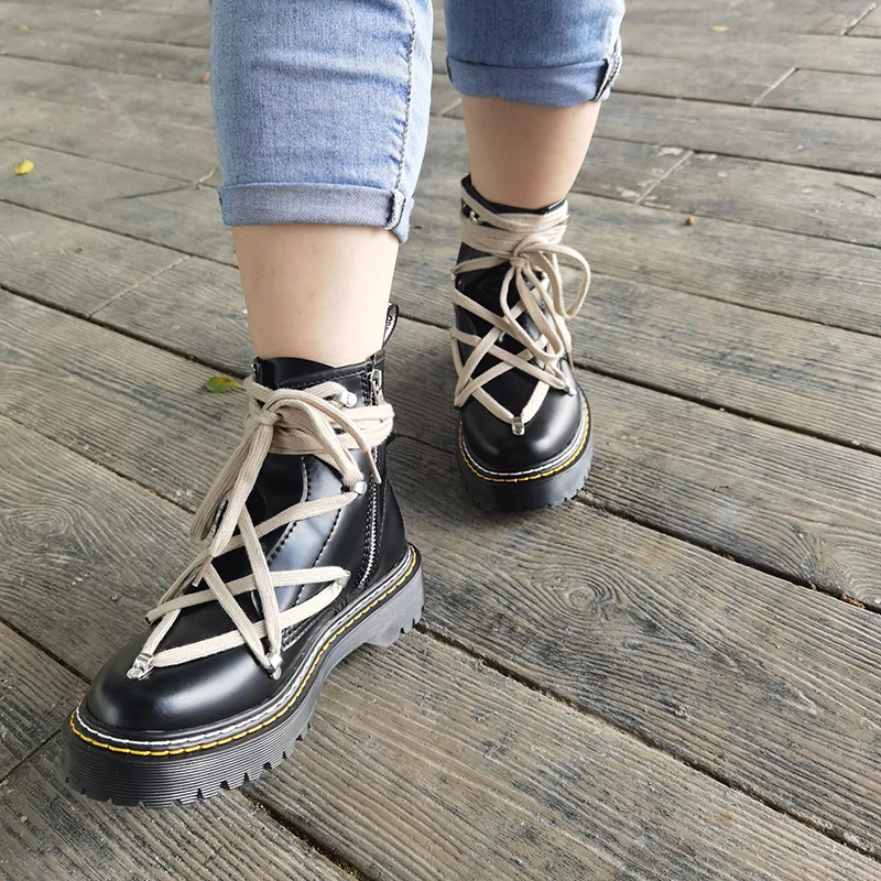 Женские ботинки на платформе, высокие ботинки на плоской подошве, з...
