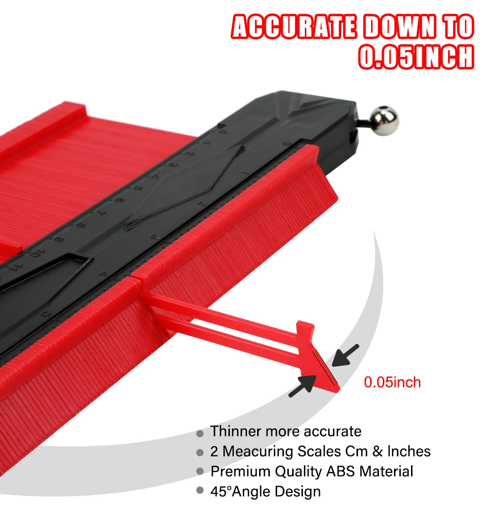 120 мм/250 мм (5 дюймов/10 дюймов) контурный манометрОсобенности:Датчик профиля предназначен для обмоточных труб, круглых рам, труб и многих объектов. Просто нажмите на зуб на предмет, чтобы соответствовать и отслеживать форму, которая вам нужна.★Измерительная способность:Для нерегулярных предметовДатчики могут быть использованы для измерения формы неправильных объектов★Материалы:Изготовлен из высококачественного АБС-пластика, прочный и устойчивый к ржавчине.Простота в использовании★Простота в использованииПросто нажмите на датчик на форму. Скопируйте контур и нарежьте на формы. Очень подходит для установки плитки, ламинатов, Ковров, проверки размеров, установки и т. д.★Высокая точностьМаркировка высокой четкости, достаточно четкая, легко читается. Подходит для деревообработки, автомобильной металлической пластины, нержавеющей стали или любых копировальных работ.