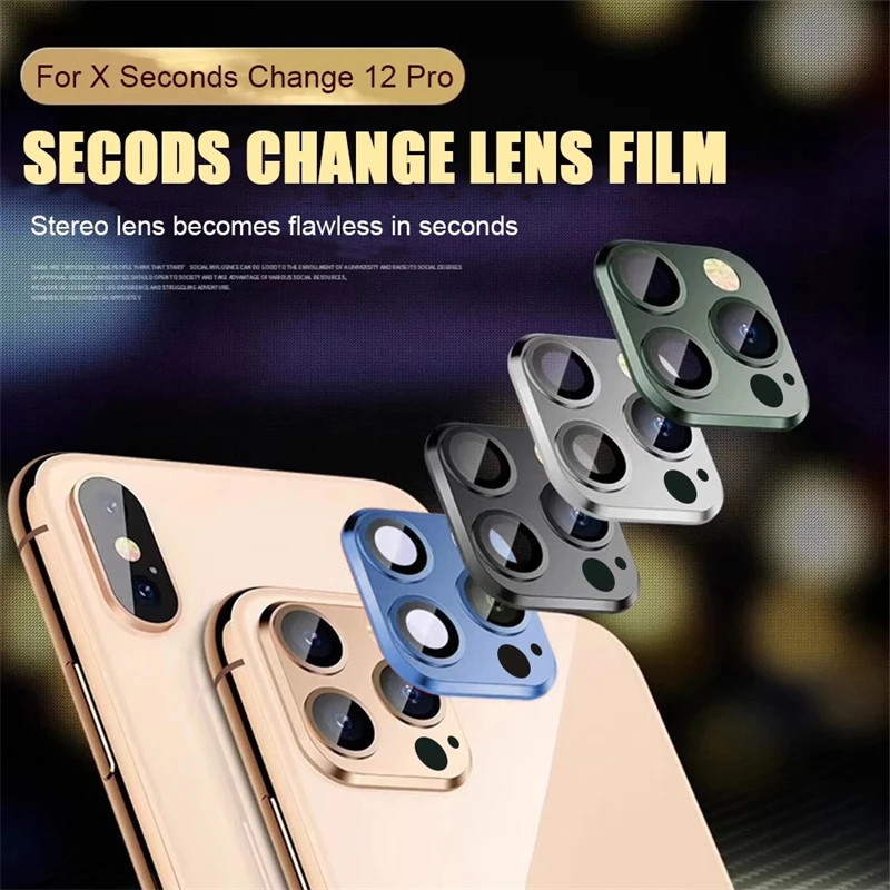 Пленка для объектива камеры для iPhone X XS Max до 12 Pro 12 Pro Max закаленное стекло металлическая защитная задняя крышка для объектива искусственная Модифицированная наклейка