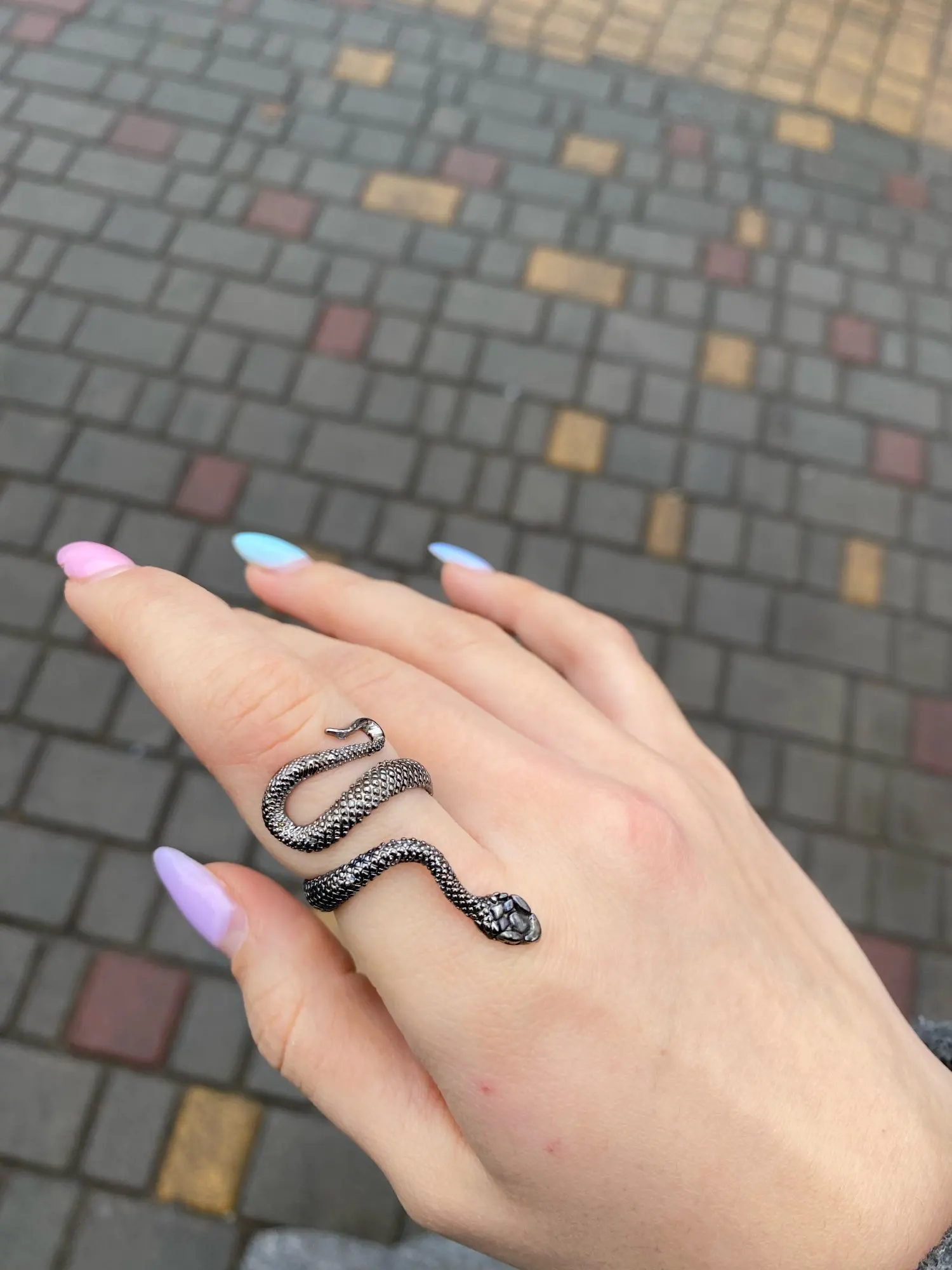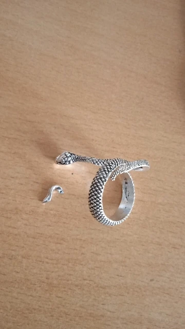 немного разочарована(. кольцо пришло довольно быстро, но как пришёл то голова змеи была поднята к верху чего я не ожидала, но я аккуратно погнула его вниз. после как решила одеть его то хвост отвалился( (на фото)
