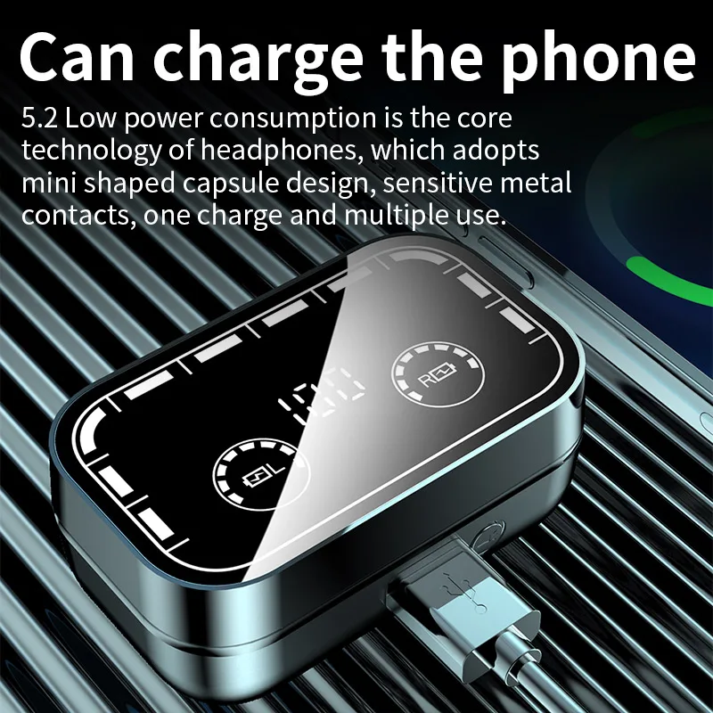 1. Оснащен новым чипом V5.2, поддерживает большинство устройств и использует технологию низкого энергопотребления.2. Зарядное устройство 3500 мАч может полностью заряжать 2 пары наушников примерно в 18 раз, обеспечивая больше времени для прослушивания музыки.3. Благодаря водонепроницаемой технологии IPX7 нет необходимости беспокоиться о попадании воды, чтобы вы могли наслаждаться спортом!4. 8mms двойной привод, наслаждайтесь 9D мощной и глубокой басовой музыкой.5. Популярная функция управления одним ключом поддерживает переключение песен, переключение вызовов и голосовые ассистенты для звонков.6. Вы можете использовать отсек для наушников, чтобы зарядить ваш мобильный телефон.