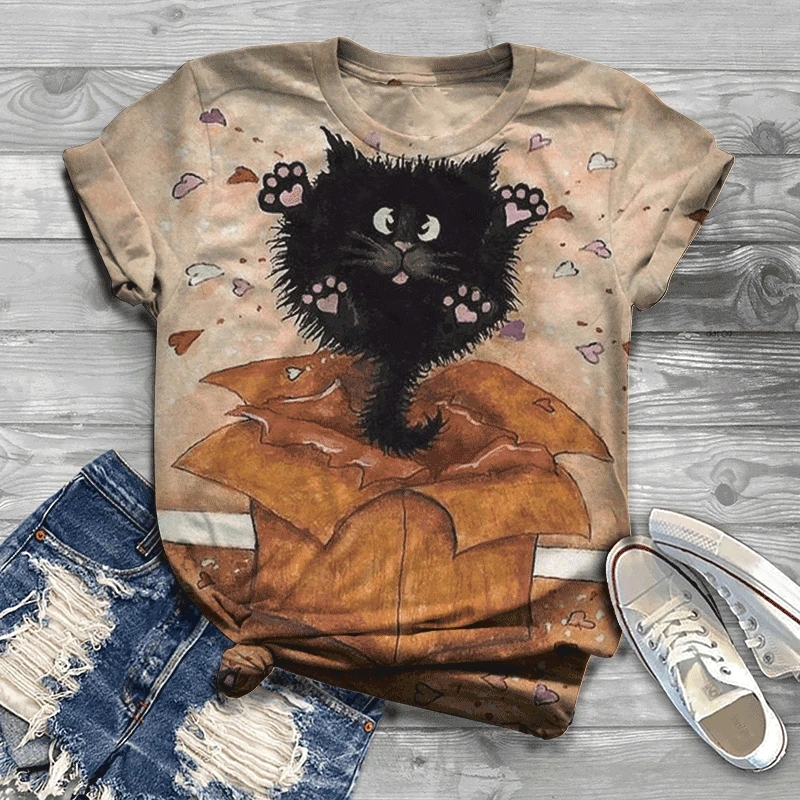Летние женские футболки, женский топ с красивым котом и тигром, Мул...
