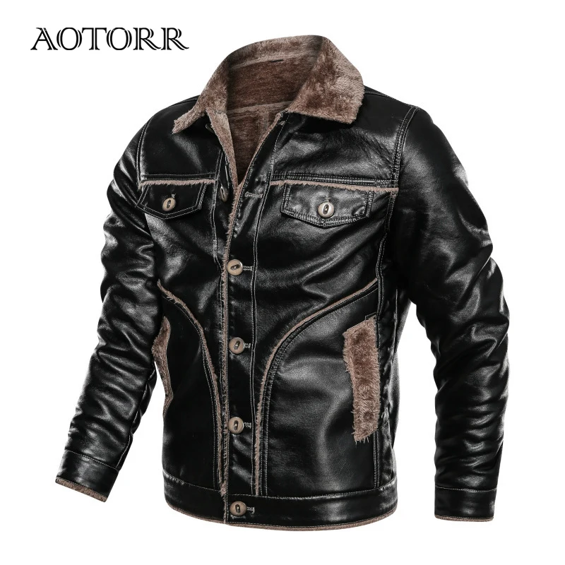 Куртка мужская из искусственной кожи, на флисе, в стиле ретро
