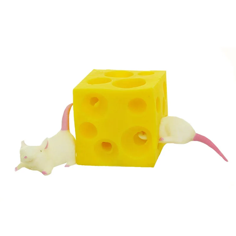 Игрушка-антистресс для креативных стрейчевых мышей и сыра, 2 мягких фигурки и блоки для сыра