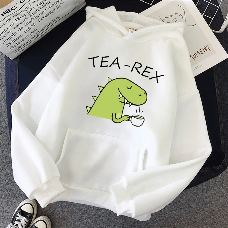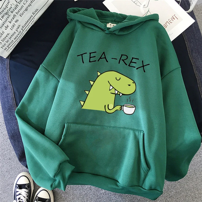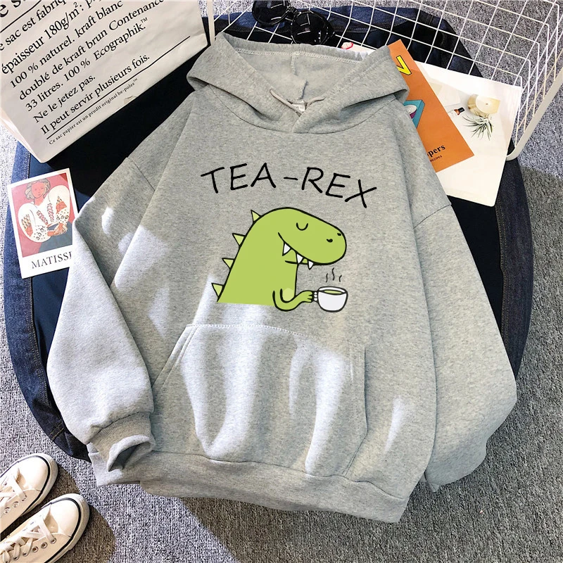 Толстовка женская с мультяшным динозавром, Модный повседневный Свитшот оверсайз, утепленный свитер с принтом в Корейском стиле, зимняя толстовка с динозавром