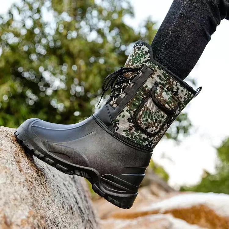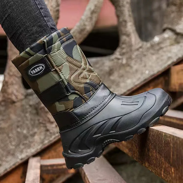 Зимние мужские ботинки WEH, зимние камуфляжные мужские армейские ботинки, водонепроницаемые теплые мужские повседневные рабочие сапоги до середины икры для рыбалки, защитная обувь