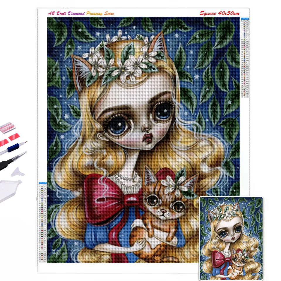 Алмазная живопись AB с котом, вышивка крестиком 5D, алмазная вышивк...