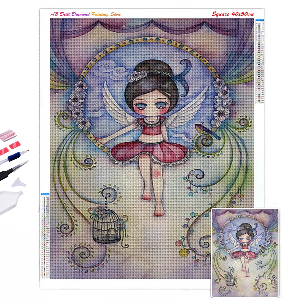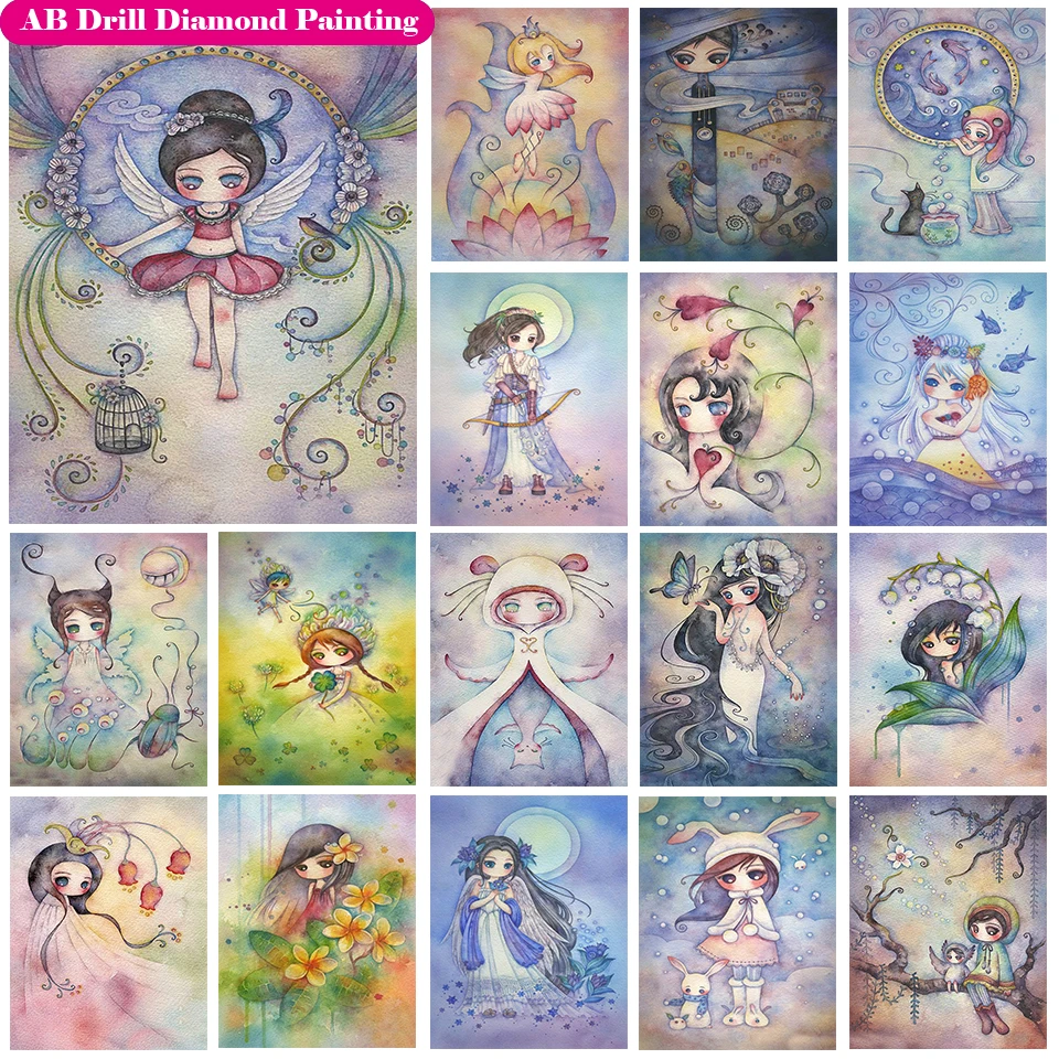 Алмазная живопись 5D с изображением ангела Девушки AB, животные, во...