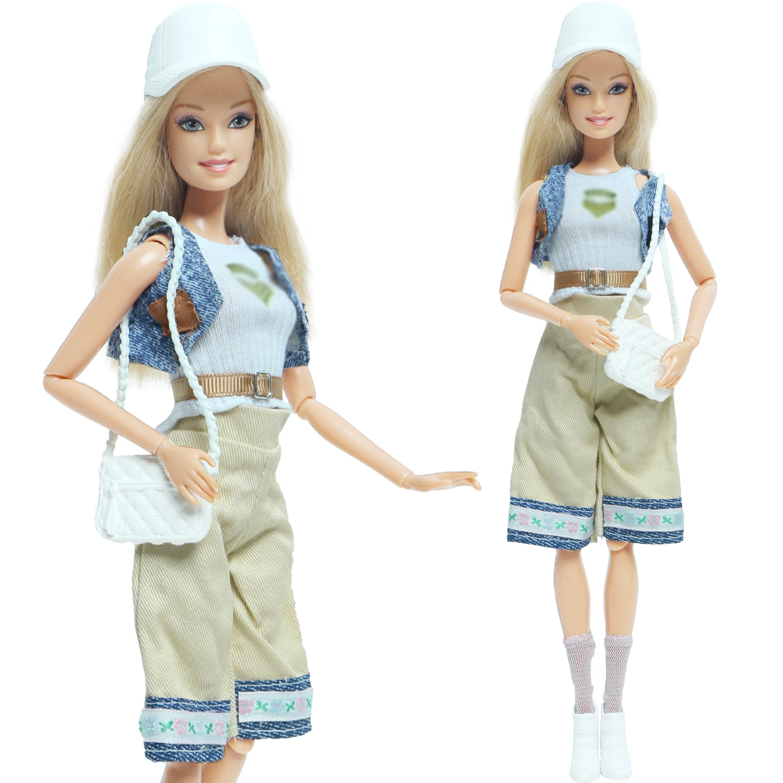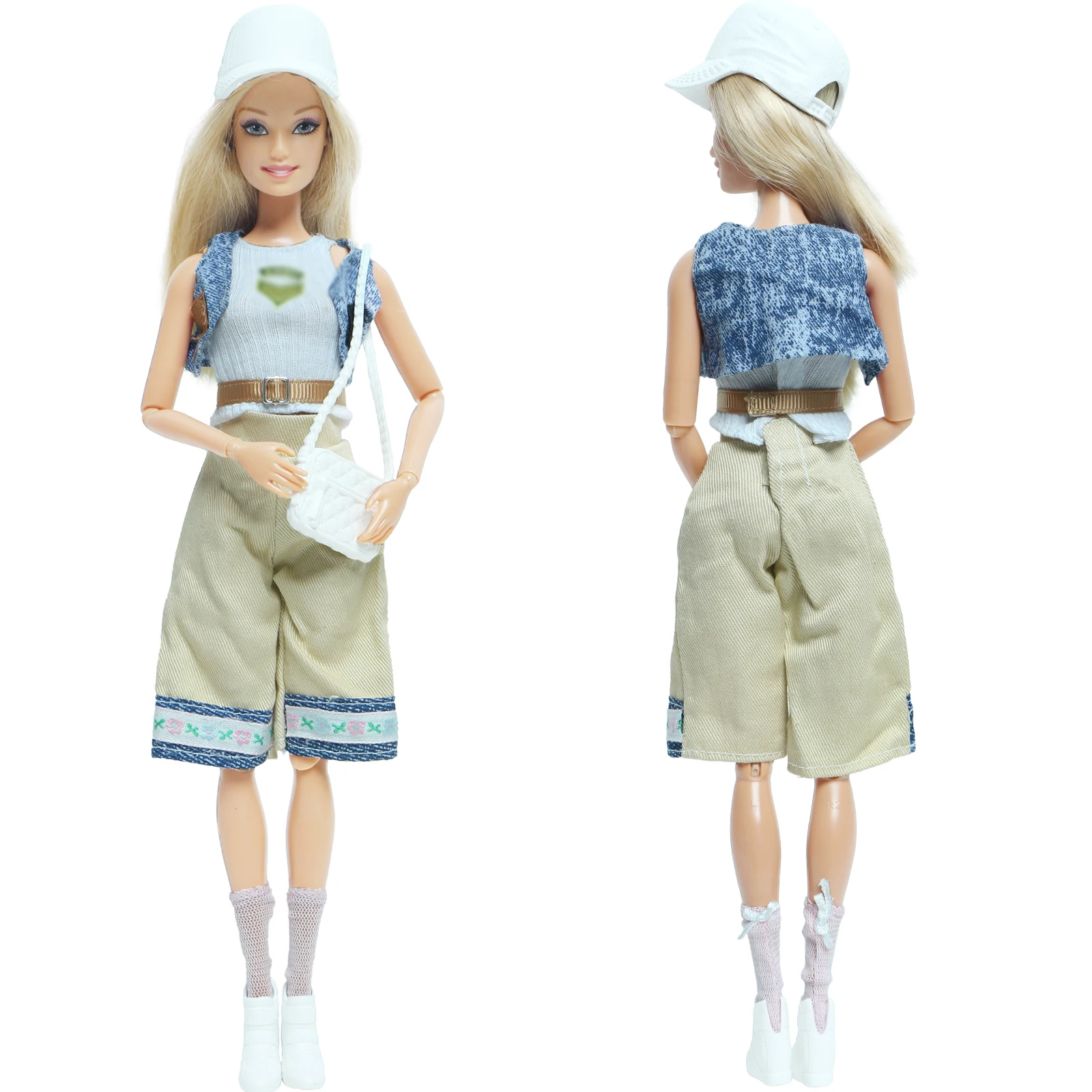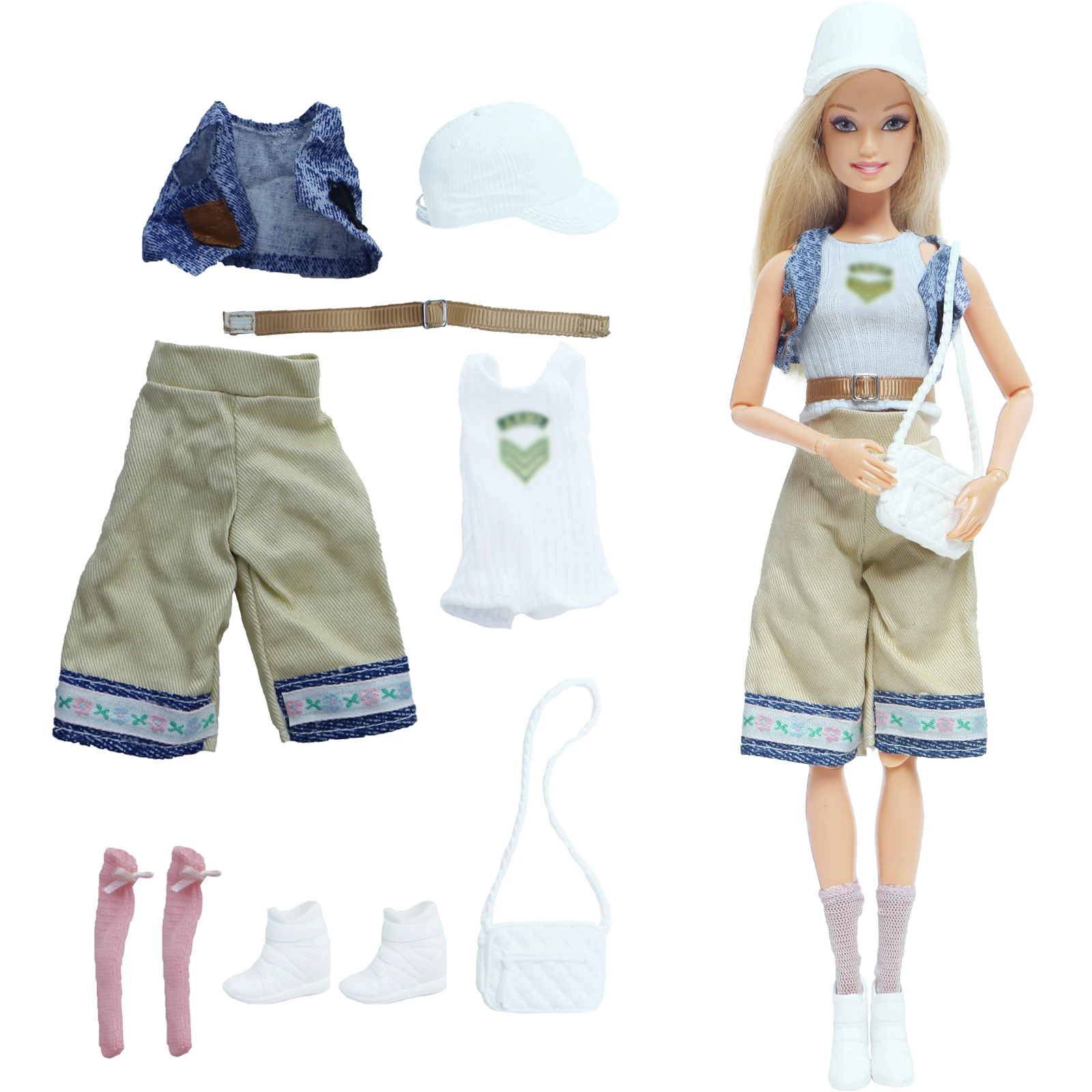 Новейший наряд для куклы BJDBUS, спортивная одежда, жилет, куртка, ремень, штаны, розовый носок, кепка, сумочка, обувь, одежда для Барби