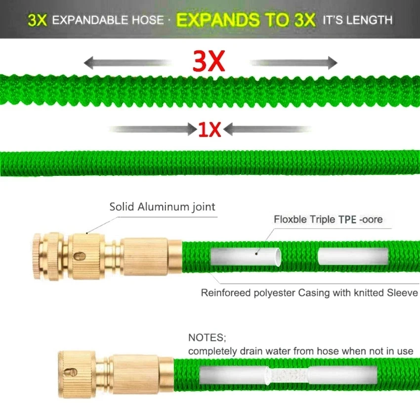 Товар: Выдвижной водяной шланг и комплект водяного пистолетаПродукция включает: 1 шт. водопровод + легированный водяной пистолет + 2 шт. Универсальный Латунный разъемПенопластовый горшок на выборРазмер:25FT-7.5M Расширенный: неиспользованный 8ft (2,5 м), полностью растянутом 25ft (7,5 метров)Длина 50FT-15M: неиспользованные 16 футов (5 м), полностью растягивающиеся 50 футов (15 метров)75FT-22M Расширенный: неиспользованный 25ft (7,5 м), полностью растянутом 75ft (22,5 метров)Длина 100FT-30M: обычно 33 фута (10 м), полностью растягивается на 100 футов (30 метров)125FT-37.5M прогноз погоды: обычно заказанный товар 40ft (12,5 М), полностью растянутом 125ft (37,5 метров)150FT-45M Расширенный: обычно 50 футов (15 м), полностью растягивается 150 футов (45 метров)Характеристика:· Поскольку наш продукт обладает расширенной способностью, он просто удобнее, когда дело доходит до хранения вашего шланга, чем обычные.· Водопроводная вода будет находиться под давлением через шланг, что делает поток воды более быстрым по сравнению с обычным шлангом.Многоцелевой водяной пистолет делает уборку проще, чем когда-либо!Важное примечание:1. Пожалуйста, внимательно проверьте длину шланга, который вы хотите купить. Вся длина, указанная на выборе, является длиной после того, как шланг полностью расширен2. Пожалуйста, внимательно проверьте давление на водную ленту. Обычно шланг растягивается до максимальной длины. Но если давление воды не хватает (ниже 0,5 МПа), это может быть немного короче, чем это большой аквариум длиной.3. При первом использовании шланг может не быть полностью растянут из-за. Пожалуйста, дайте ему растягиваться 3-4 раза и после этого он будет растягиваться нормально.