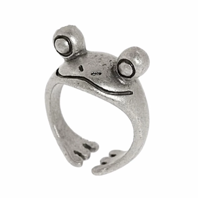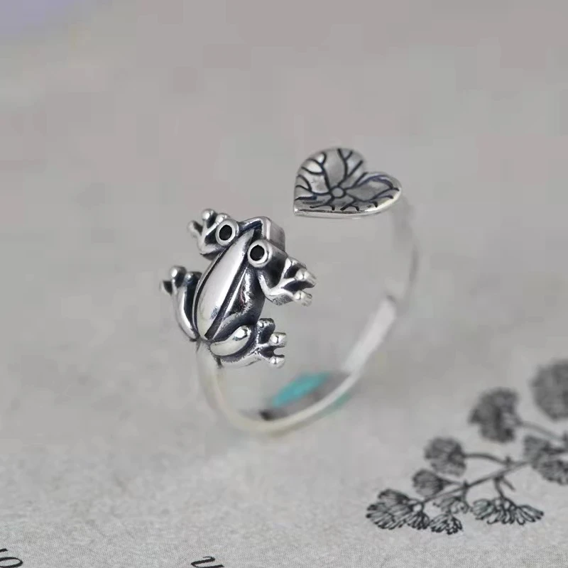 Женское кольцо в виде лягушки, винтажное открытое серебряное кольцо...