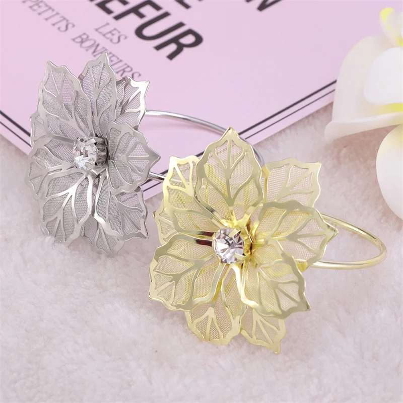 12 шт. кольцо для салфеток из сплава в форме цветка Стразы дизайнерские держатели для полотенец и салфеток украшение для свадебного стола