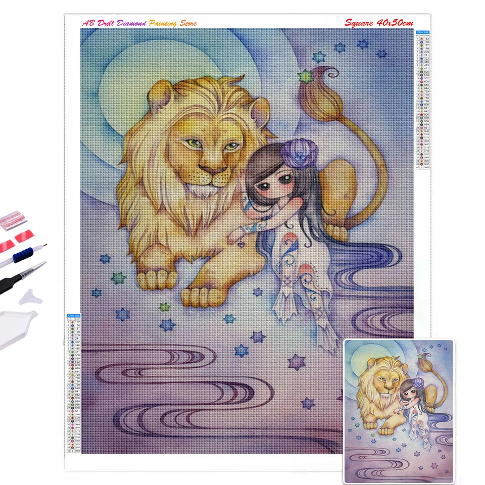 Алмазная живопись 5D с изображением ангела Девушки AB, животные, во...