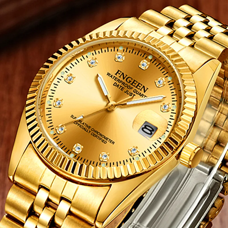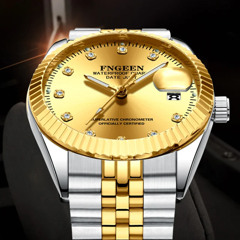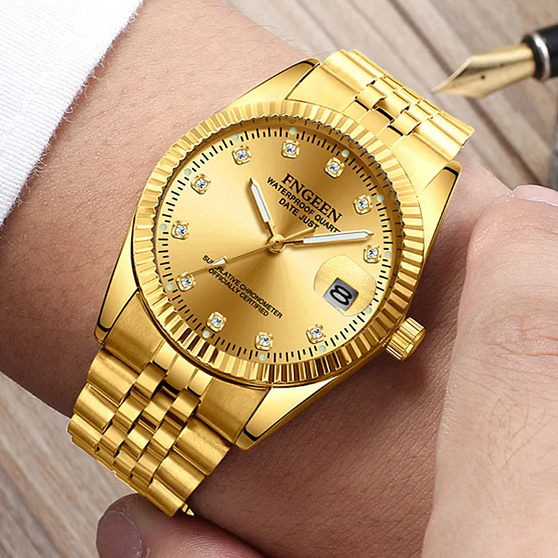 Часы наручные FNGEEN Мужские кварцевые, люксовые модные деловые зол...