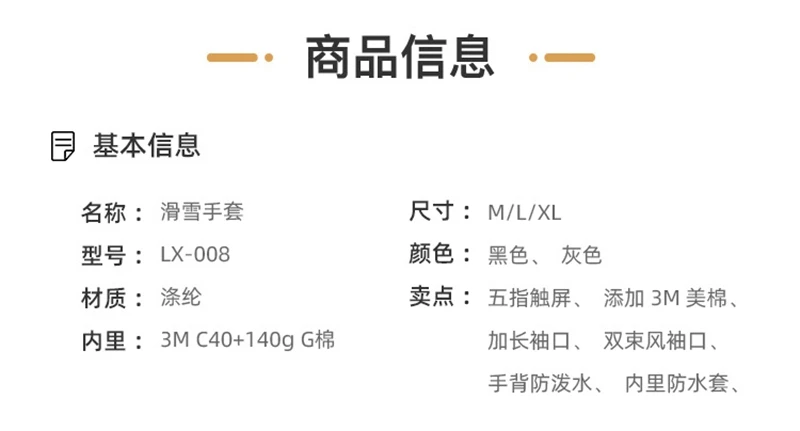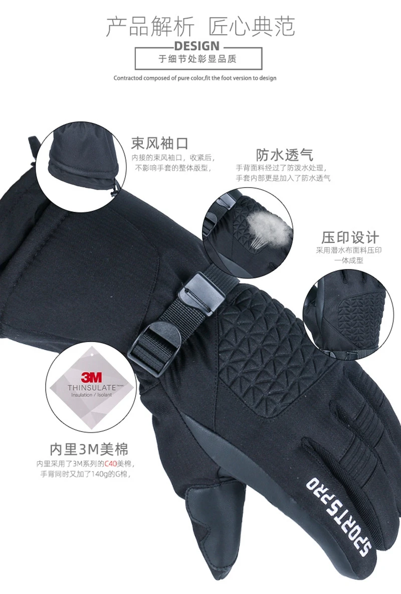 Особенности1. Двойной водонепроницаемый дизайн: водонепроницаемая наружная ткань и внутренняя вставка из водонепроницаемого ТПУ мембрана, они водонепроницаемые, ветрозащитные и дышащие2. Заполненная внутри с 40 граммов 3M Thinsulate Подкладка Теплый Хлопковый жакет для того, чтобы держать ваши руки в тепле, приятная на ощупь и безопасная для кожи ткань мягкая трикотажная ткань подкладка сделает вас не комфортно3. Ладонь и пальцы с мягкой прочной искусственной кожей, он имеет функцию сенсорного экрана, вы можете управлять смарт-устройствами, когда вы носите его4. Регулируемый браслет и эластичные повязки на запястье эффективно защищают от ветра5. Идеально подходит для катания на лыжах, сноуборде, снегоходах, верховой езды, велоспорта и других зимних видов активного отдыха