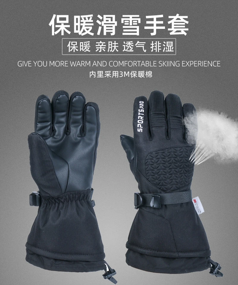 Теплые высококачественные зимние лыжные перчатки черные мужские и женские 3 м Thinsulate водонепроницаемые Thouchscreen сноуборд снегоходы серые варежки