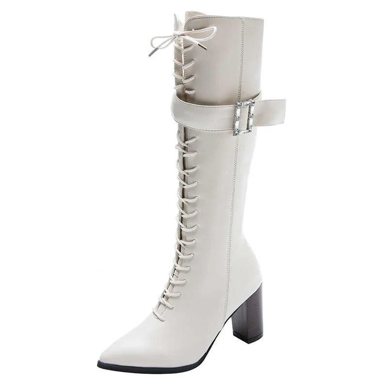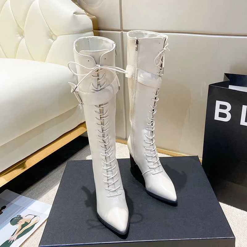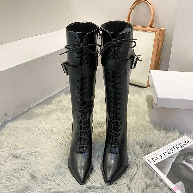 Ботильоны С Острым носком на шнуровке, сапоги Челси из искусственной кожи на высоком каблуке, женские длинные сапоги в стиле панк, женская обувь