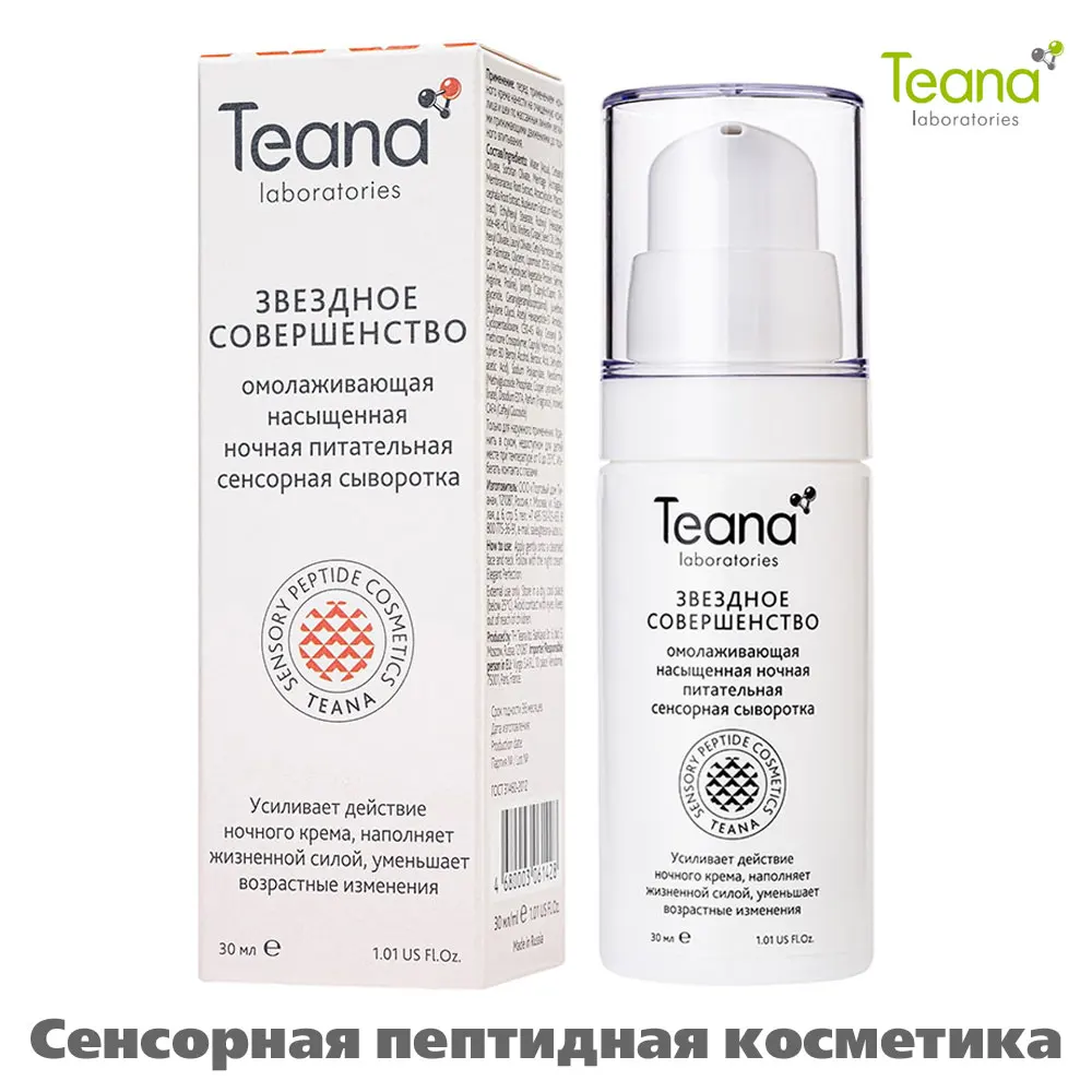 Teana омолаживающая пептидная ночная сыворотка для лица Звездное Совершенство, уменьшает морщины, осветляет, увлажняет, 30ml