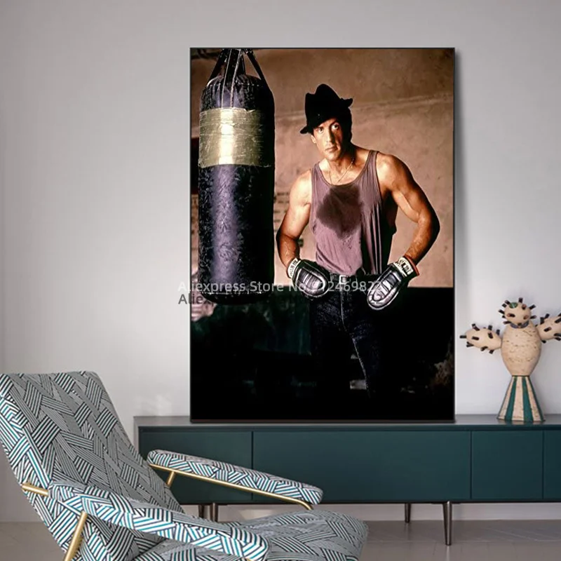Рокки Бальбоа кино бокс мотивирующая печать черный белый холст фотостена для декора спальни