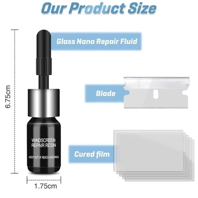 Детали проекта:* Набор для ремонта лобового стекла автомобиля из смолы* 100% новый и высокое качество* Простой в использовании и эксплуатации, удобный для транспортировки и хранения* Это сэкономит вам много затрат и времени на покупку нового стекла.* В сочетании с отверждающей лампой, можно получить лучший эффект ремонта.* Практичный набор инструментов для ремонта стекла для всех мудрых владельцев автомобилей.* Это может помочь вам восстановить и восстановить различные виды повреждений, вызванных дорожно-транспортными происшествиями, ударами, столкновениями и ударамиПримечания:1. После повреждения, пожалуйста, закройте область прозрачной лентой, чтобы предотвратить попадание влаги и грязи в поврежденную область.2. Повреждения должны быть устранены как можно скорее, чтобы избежать рассеивания небольших трещин.3. Идеальная температура применения от 60 до 90 °F (от 15 до 32 °C). Клей высохнет под ультрафиолетовым светильник, если нет ультрафиолетового светильник,Техническое обслуживание на солнце.4. Поверхность должна быть чистой и сухой для правильного обслуживания.5. Если вам не нужно использовать клей, не подвергайте его воздействию.6. Важно! Чтобы уменьшить риск контакта химических веществ с кожей и глазами, защитные очки и перчатки следует носить при использованииЭтот продукт.Посылка:1 * ремонтная смола5 * отверждающая полоса1 * втулка для бритвы