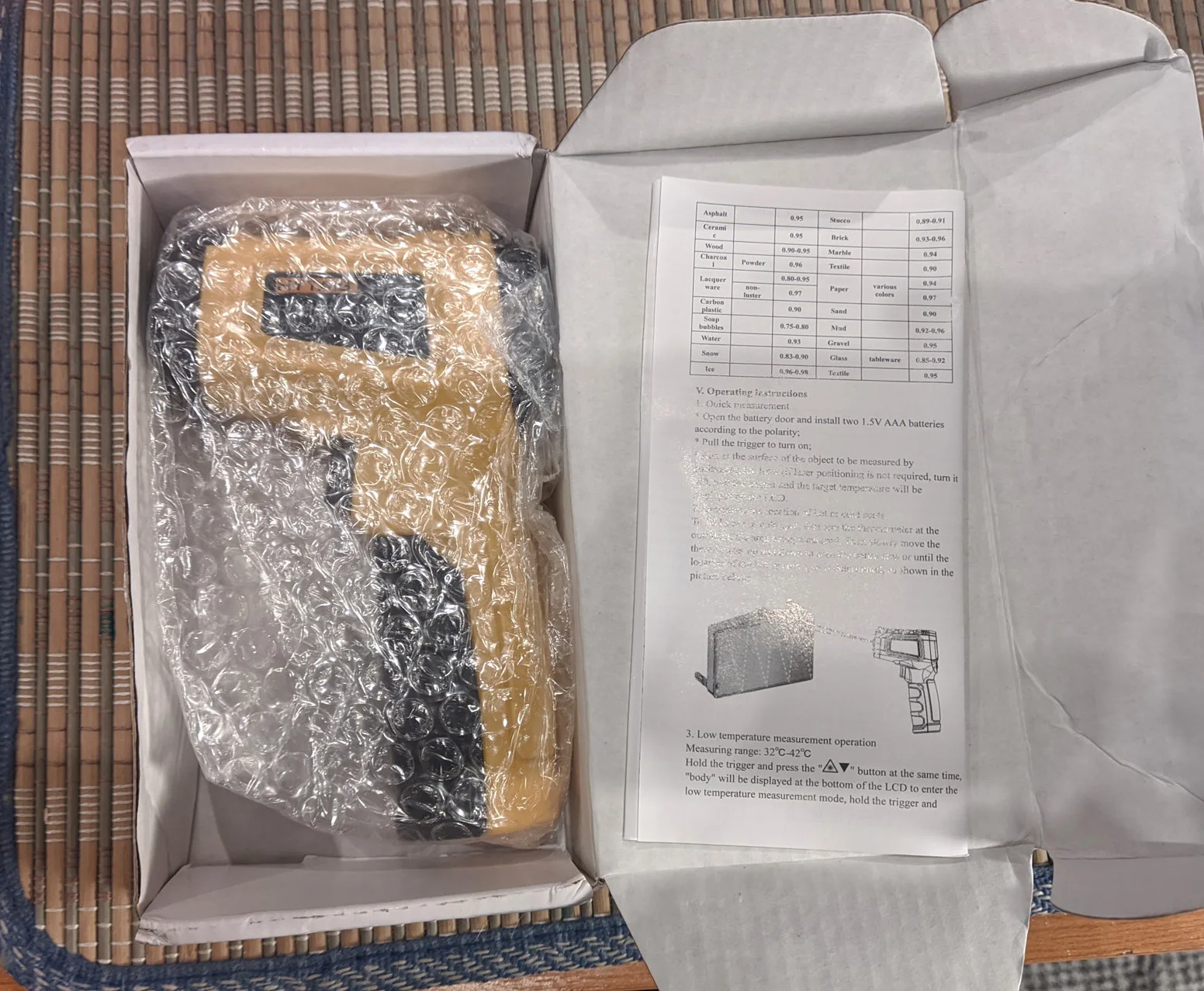 Товар соответствует описанию. Приехало за 3 недели во Львов. Упаковано хорошо в пакет-пупырку, коробку и общий пакет, все целое, только коробка помялась немного, Пирометр без повреждений, внешне все ОК, выглядит хорошо, Все работает, температуру меряет, но только на небольшом расстоянии, не более 1м, дальше врет. В целом предмет нужный, мне понравился. Продавец нормальный, отправил быстро, упаковал хорошо.