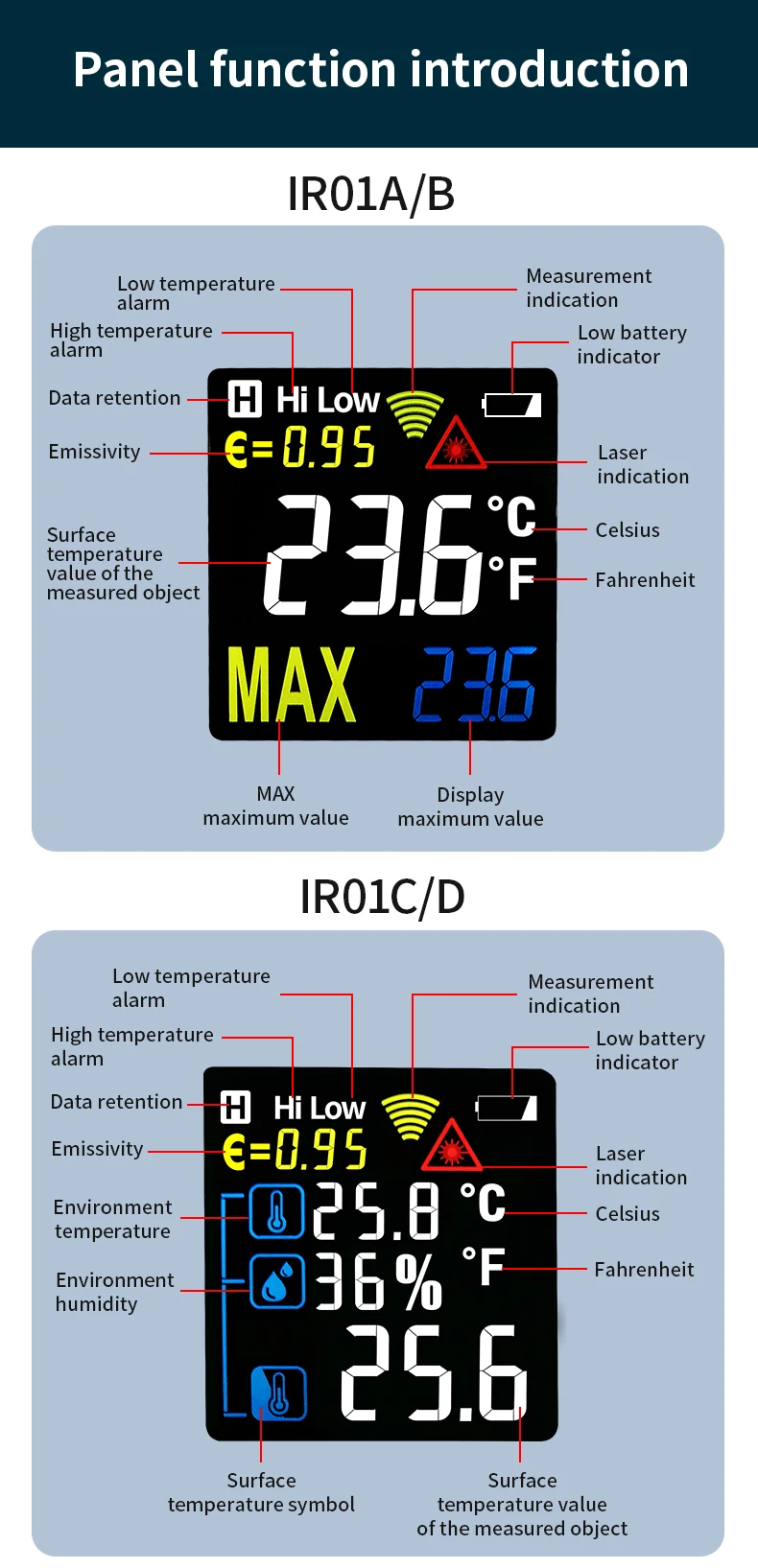 Humidity function:Only IR01C,IR01D,IR02C