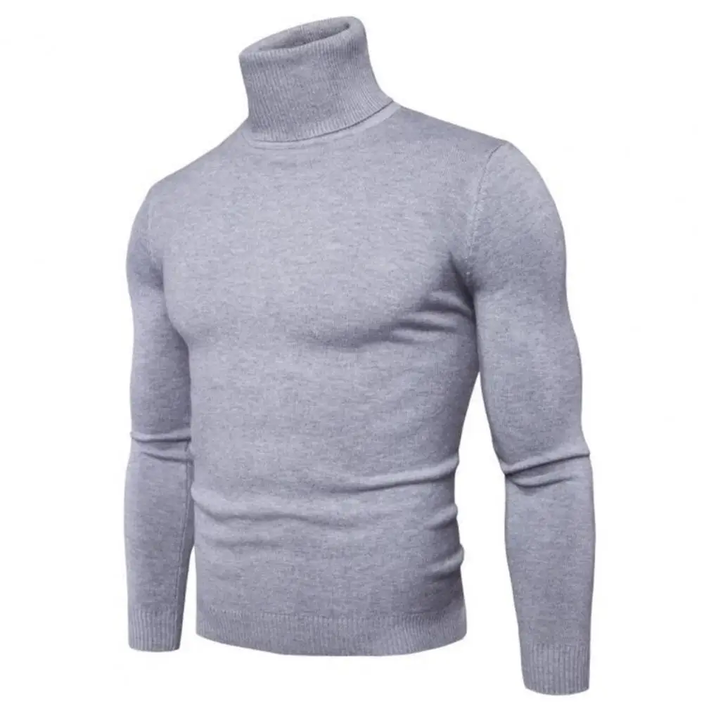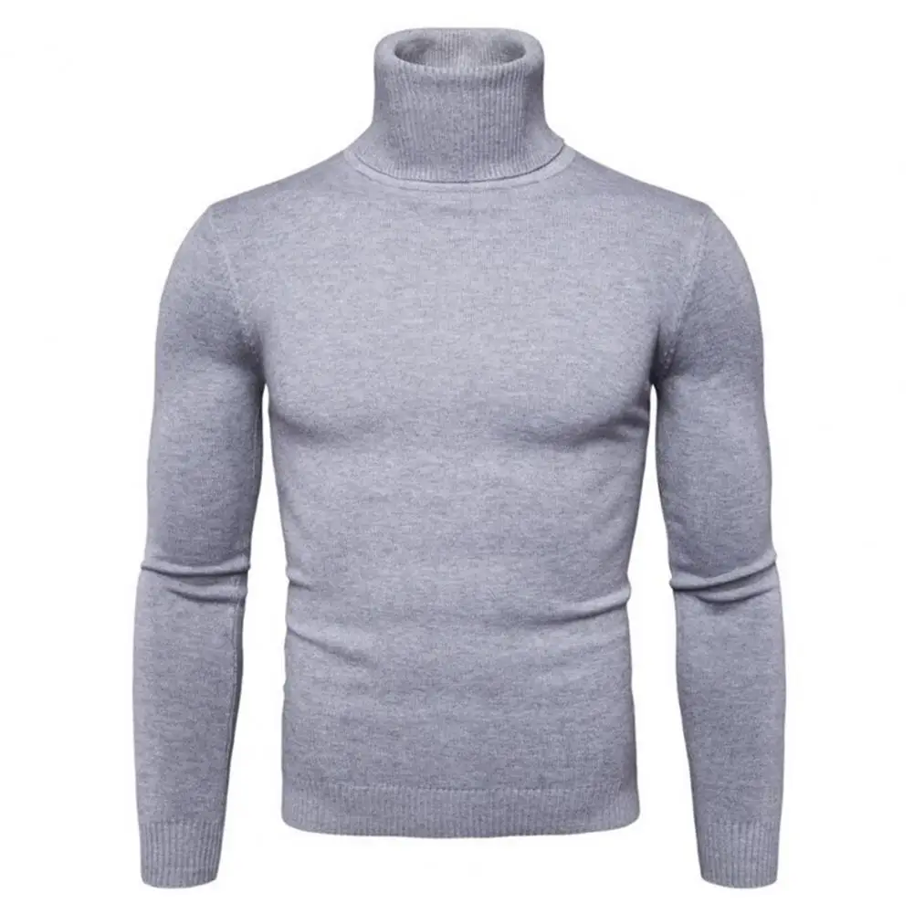 Осенний свитер, мужской пуловер с длинным рукавом, однотонный Универсальный Зимний свитер, стильный противоусадочный базовый свитер с высоким воротником
