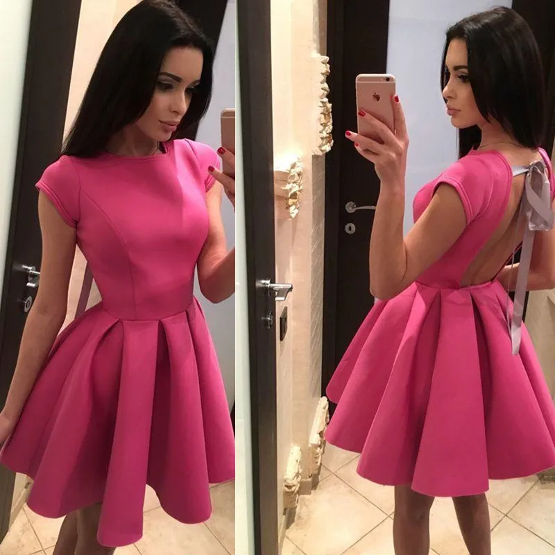 Короткое коктейльное платье с коротким рукавом, для выпускного вечера