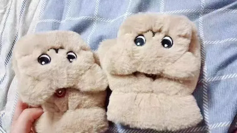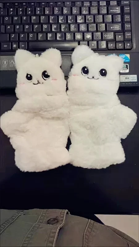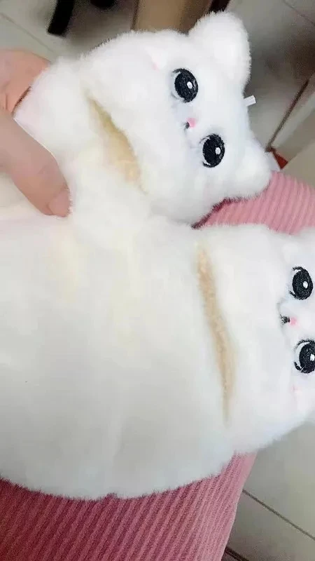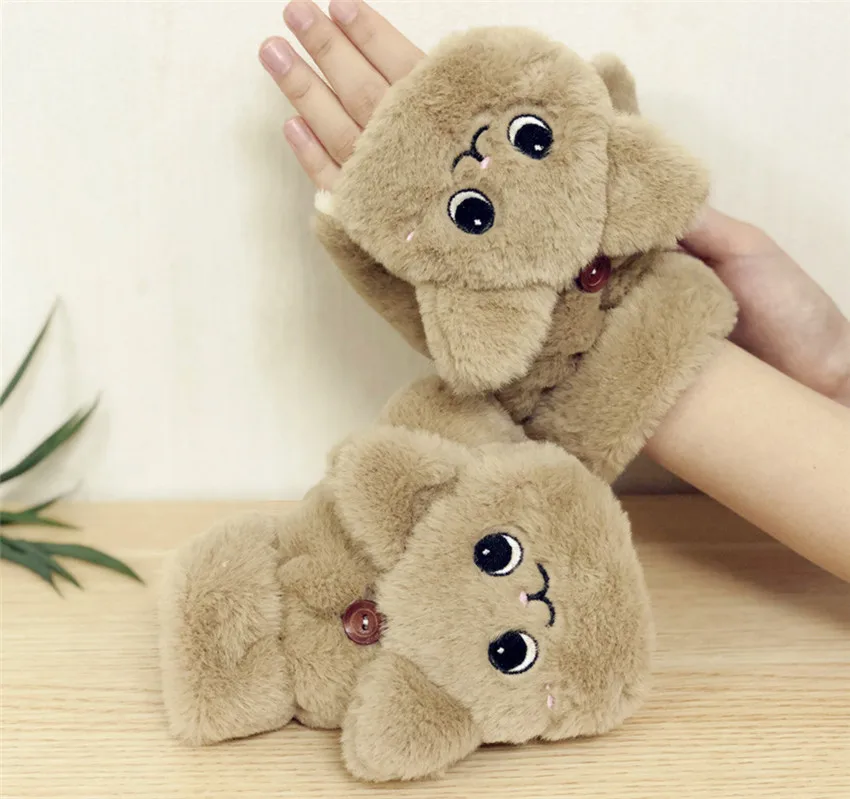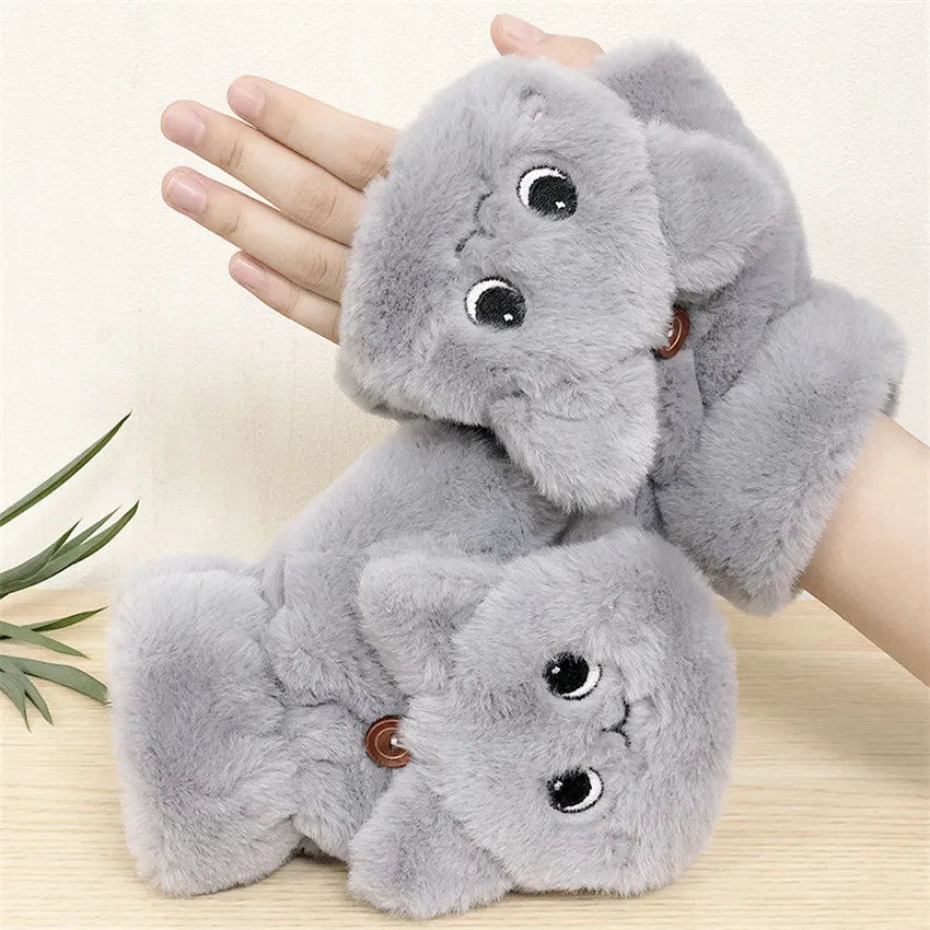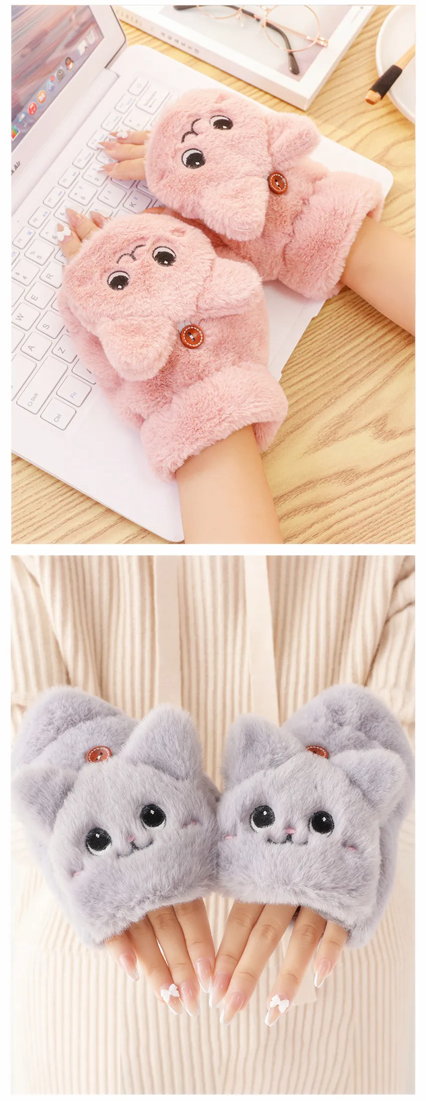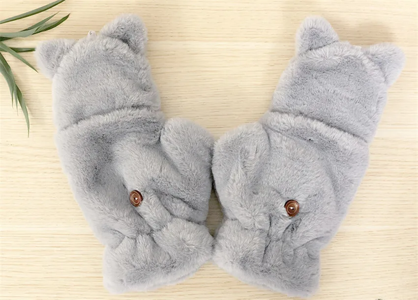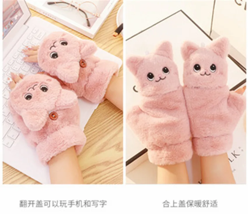 Новые женские милые плюшевые теплые перчатки в виде кота зимние искусственные бриллиантовые варежки перчатки на полпальца для рождества Хэллоуина подарок девушкам