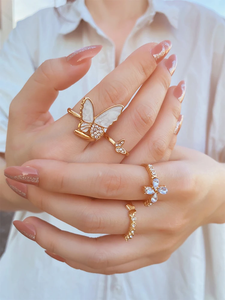 4 шт. модный набор колец с бабочкой и кристаллами для женщин и деву...