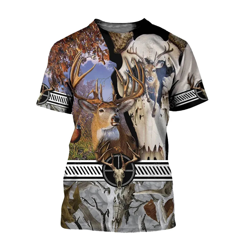 Новая летняя охотничья популярная мужская футболка с коротким рукавом и 3D принтом для охоты и оленей Повседневная Уличная Спортивная мужская и женская одежда