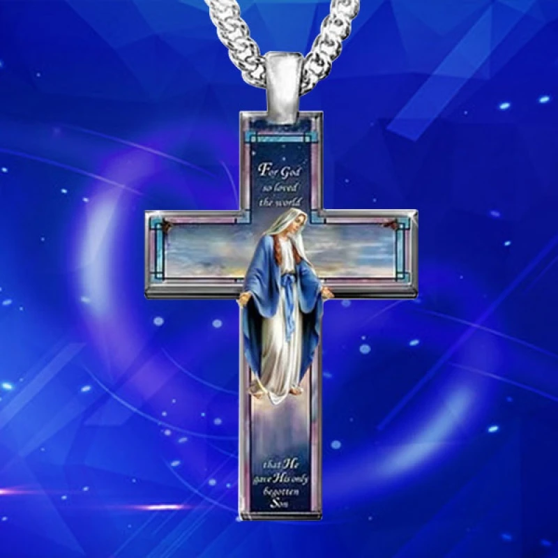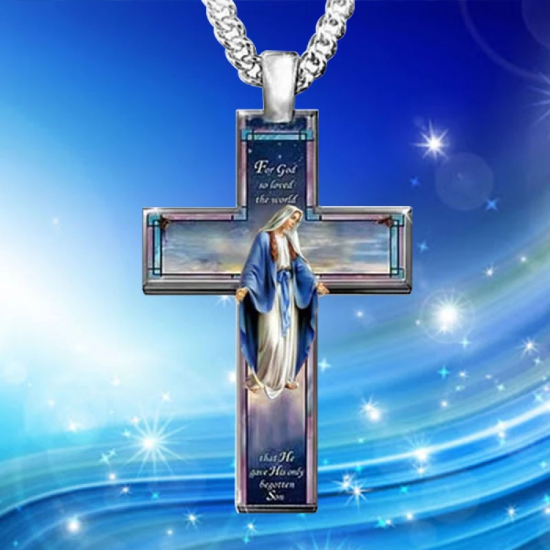 Изысканная Женская религиозная вера крест кулон ожерелье Девы Марии ожерелье W...