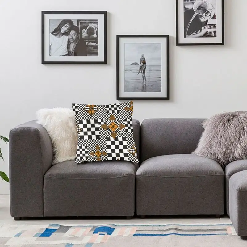 Наволочка для подушки, квадратная, в черно-желтую клетку, с 3D-прин...