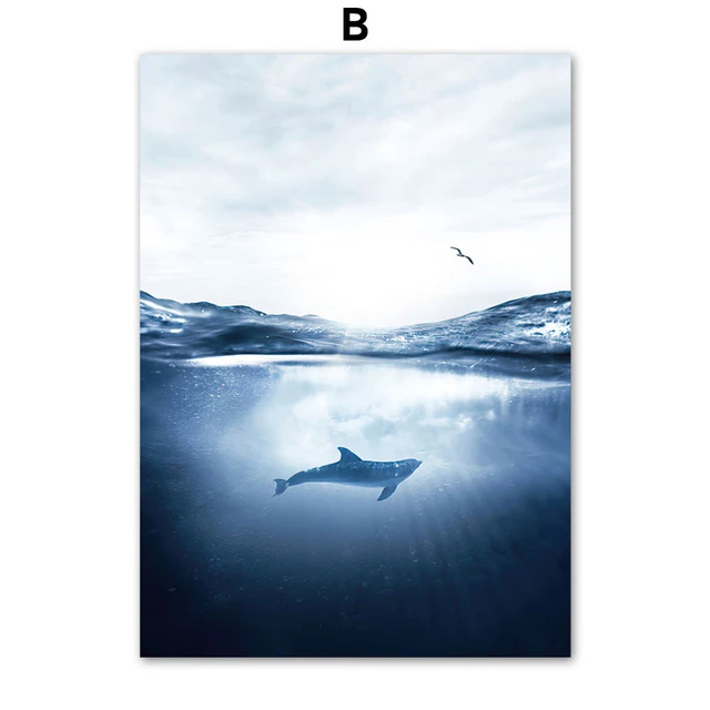 Настенное художественное полотно, живопись, синий океан, дайвинг, м...
