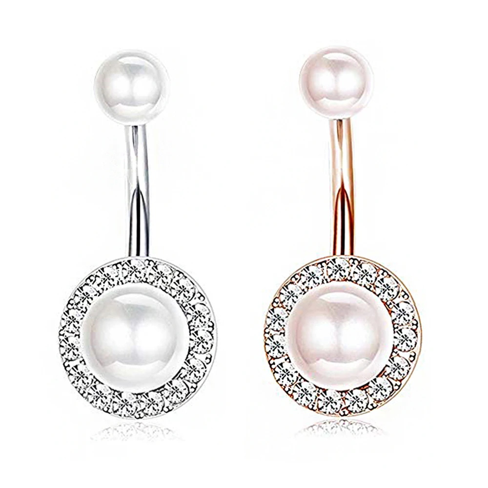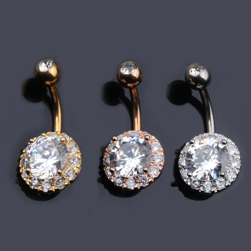 Кольцо для пирсинга живота из хирургической стали с фианитом, 14 г, 1 шт.