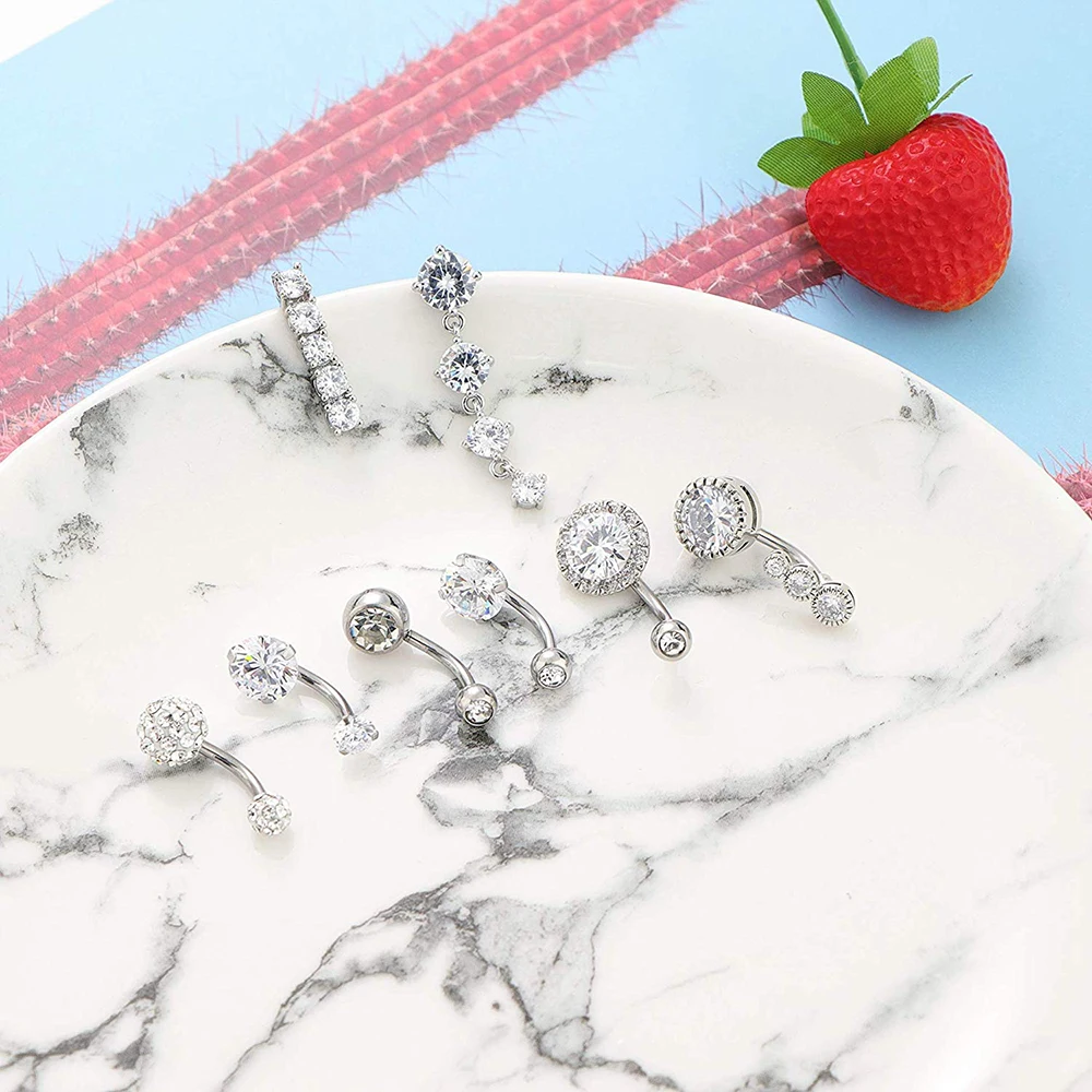 Набор колец для пупка, 14 шт.лот, с двойным круглым фианитом, из ст...
