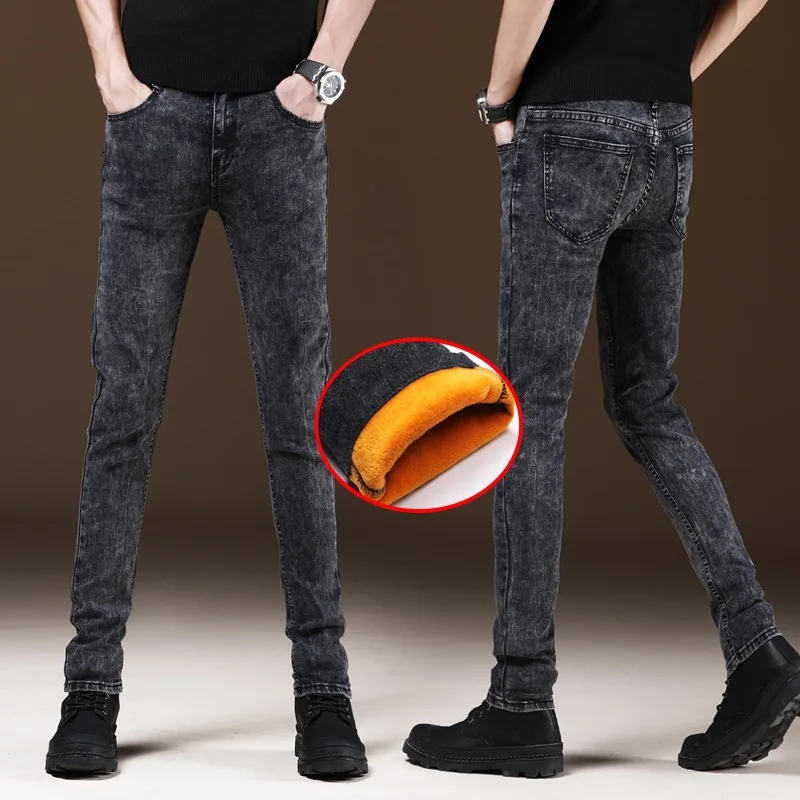 Зимние новые облегающие джинсы, мужские теплые джинсы, деловые повс...