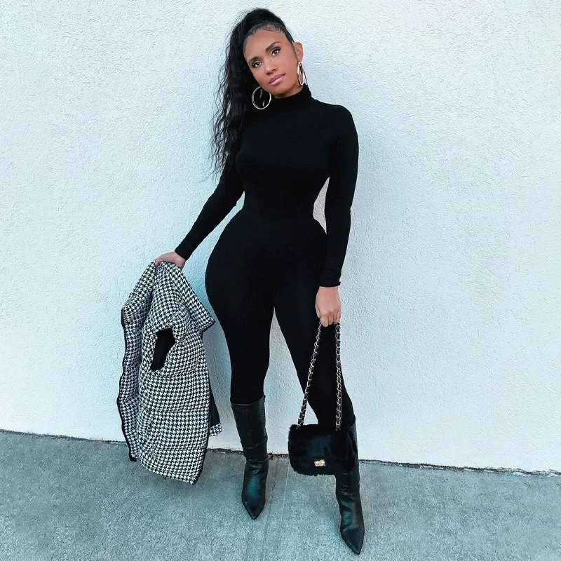 Женский комбинезон с высоким воротником, с длинным рукавом