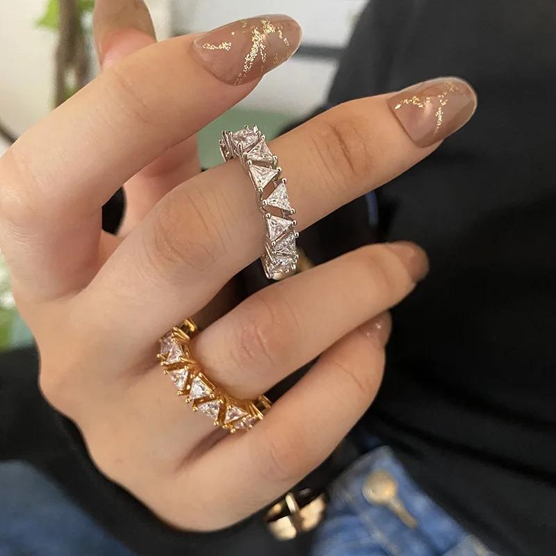 Роскошные кольца серебряного цвета с треугольным кристаллом, женское модное кольцо с блестящим кубическим цирконием, женское свадебное ювелирное изделие для вечеринки, подарки