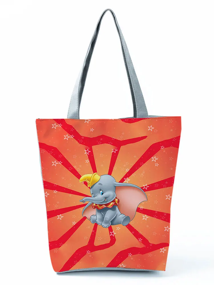Женская сумка Дисней Дамбо, Большая вместительная сумка-тоут с перьями, сумка через плечо, Экологичная сумка для покупок, повседневная фиолетовая многоразовая сумка, дорожная пляжная сумка