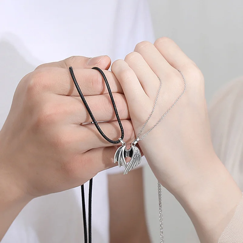 Ожерелья с дьявольскими и ангельскими крыльями для женщин и мужчин, цепочка до ключиц, 1 пара, магнитное ожерелье с подвеской, модные украшения