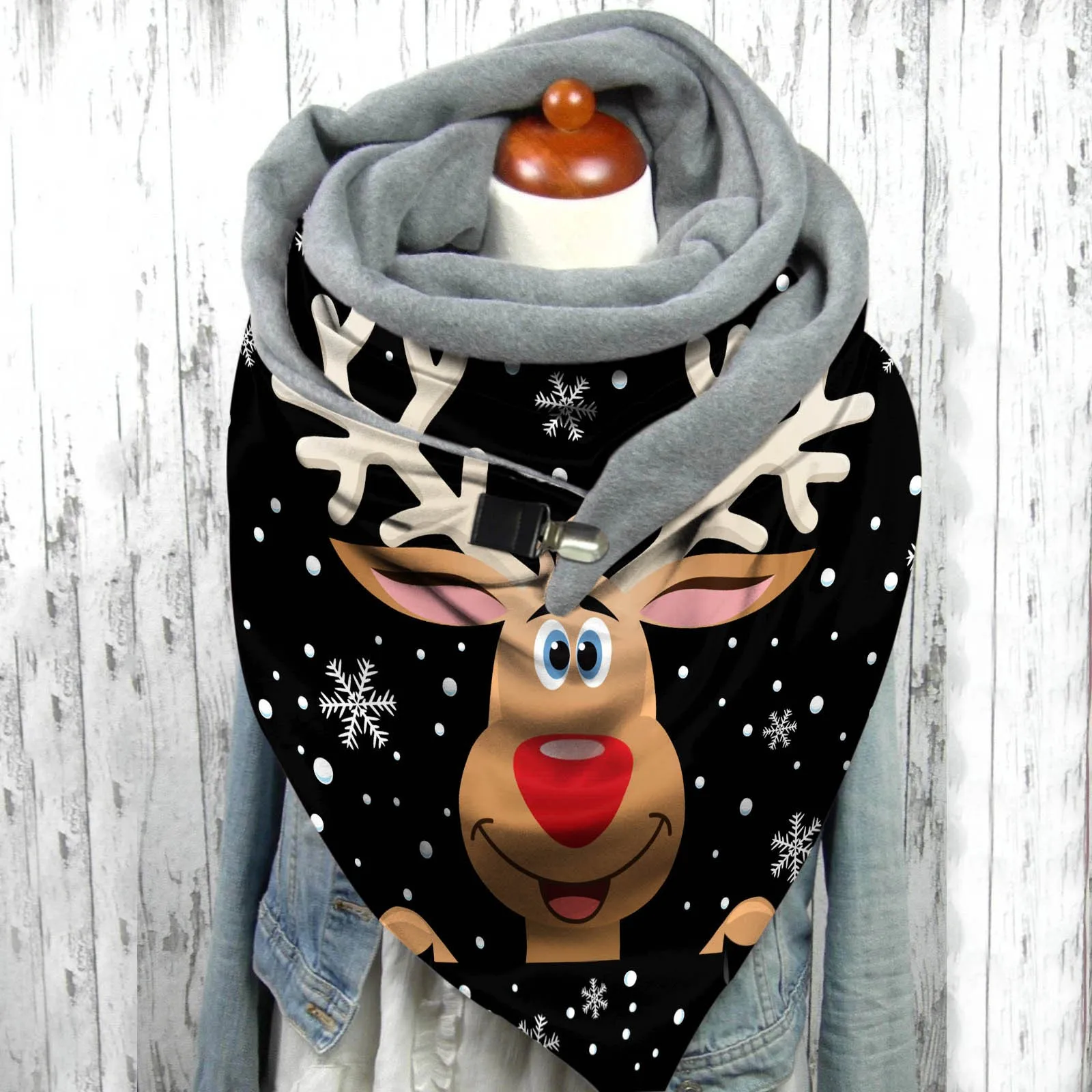 Шарф женский, зимний, с рождественским принтом, мягкий, с пуговицами
