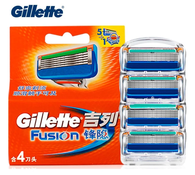 4 шт.лот лезвия для бритвы для мужчин, уход за лицом, кассета для бритья с 5 слоями, Безопасные лезвия из нержавеющей стали, подходит для Gillettee Fusione