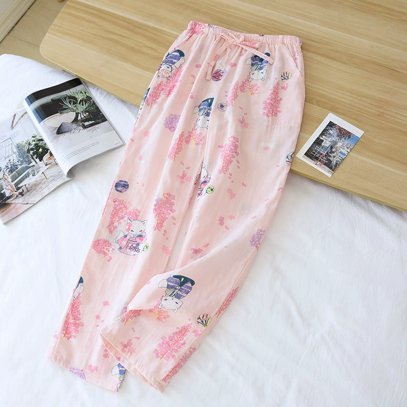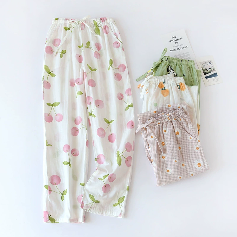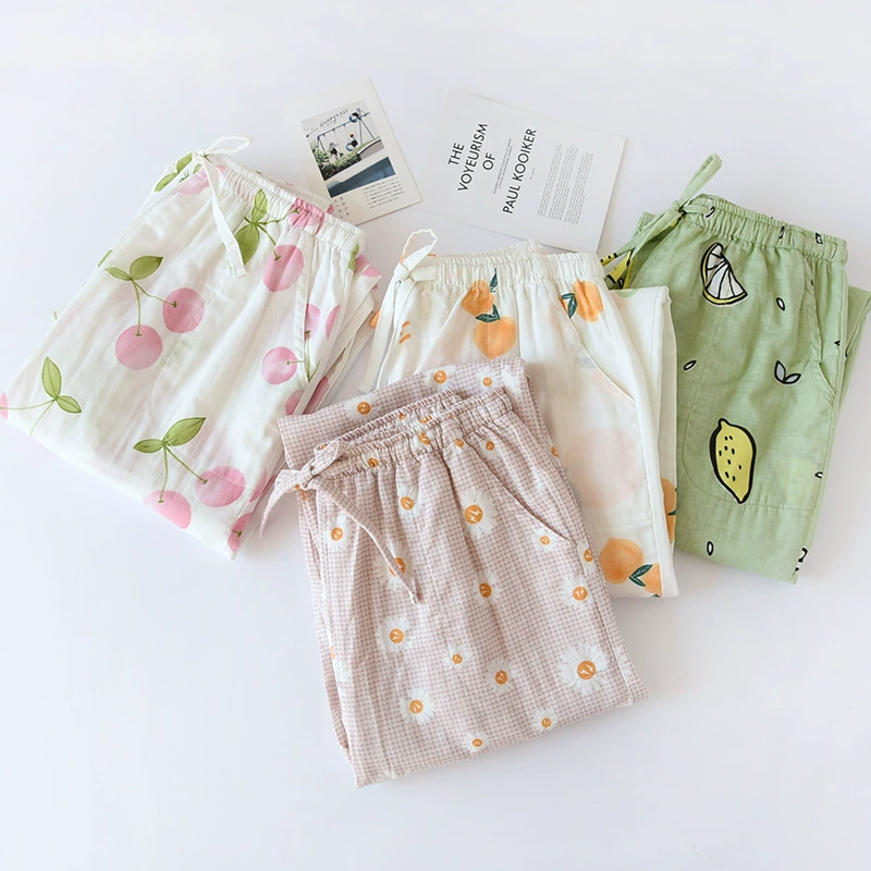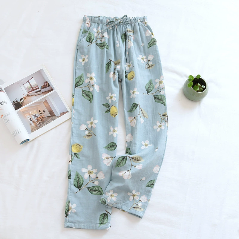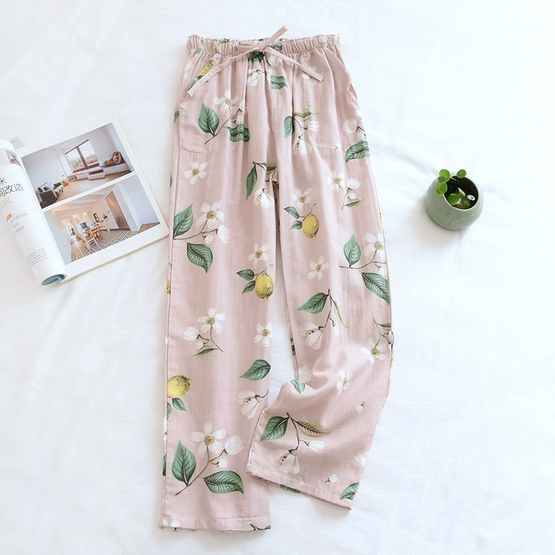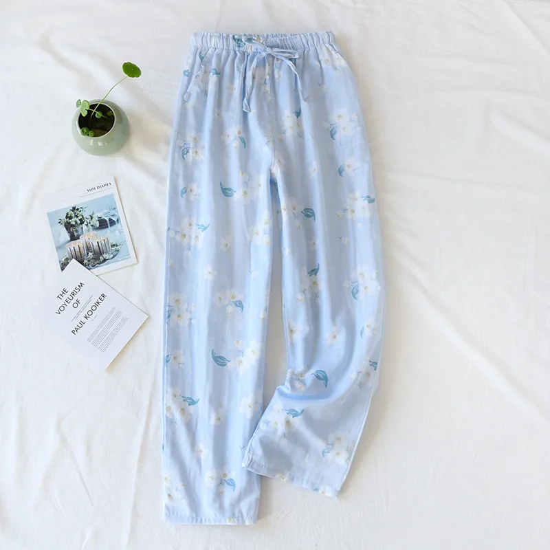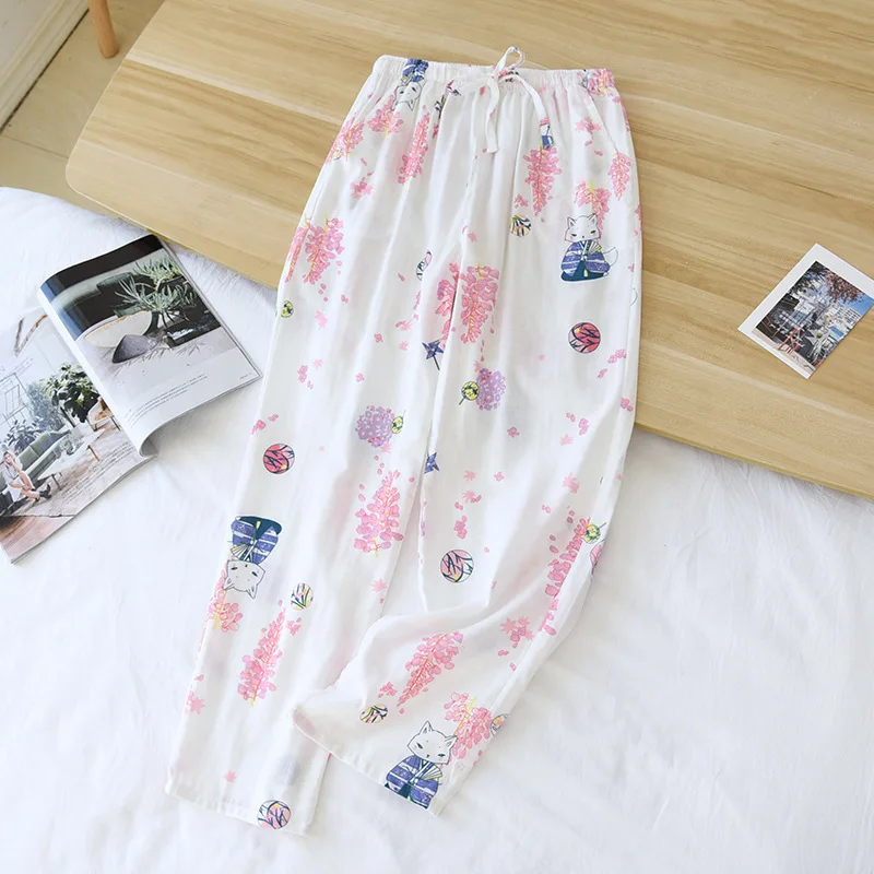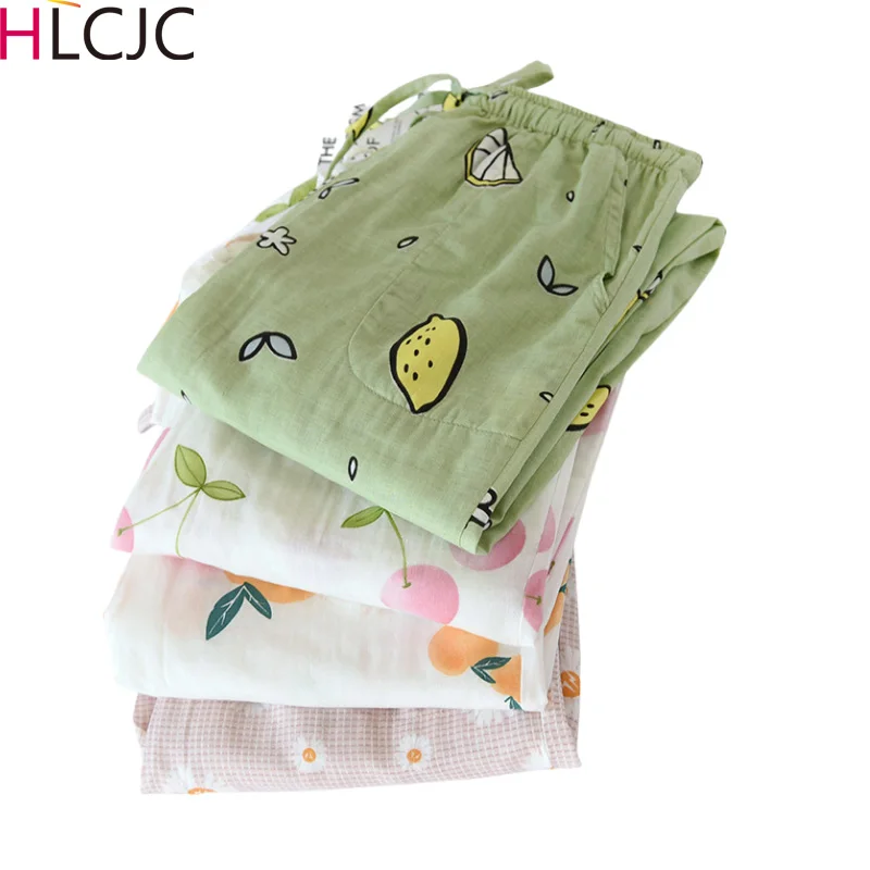 Летние 100% хлопковые домашние брюки из марли, женские штаны для сна, горячая Распродажа, пижамные брюки с принтом, женская одежда, женские свободные брюки