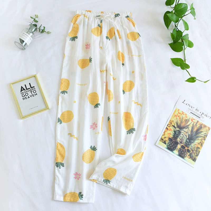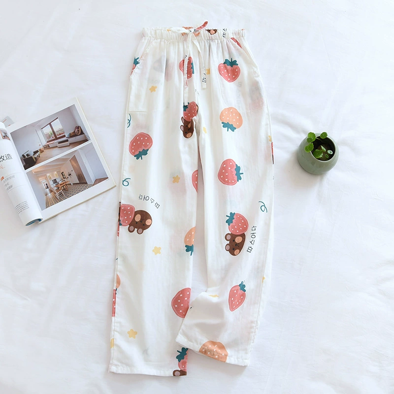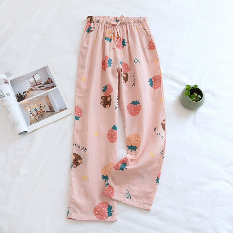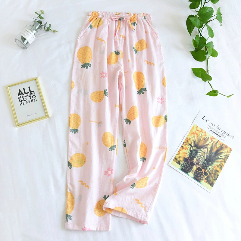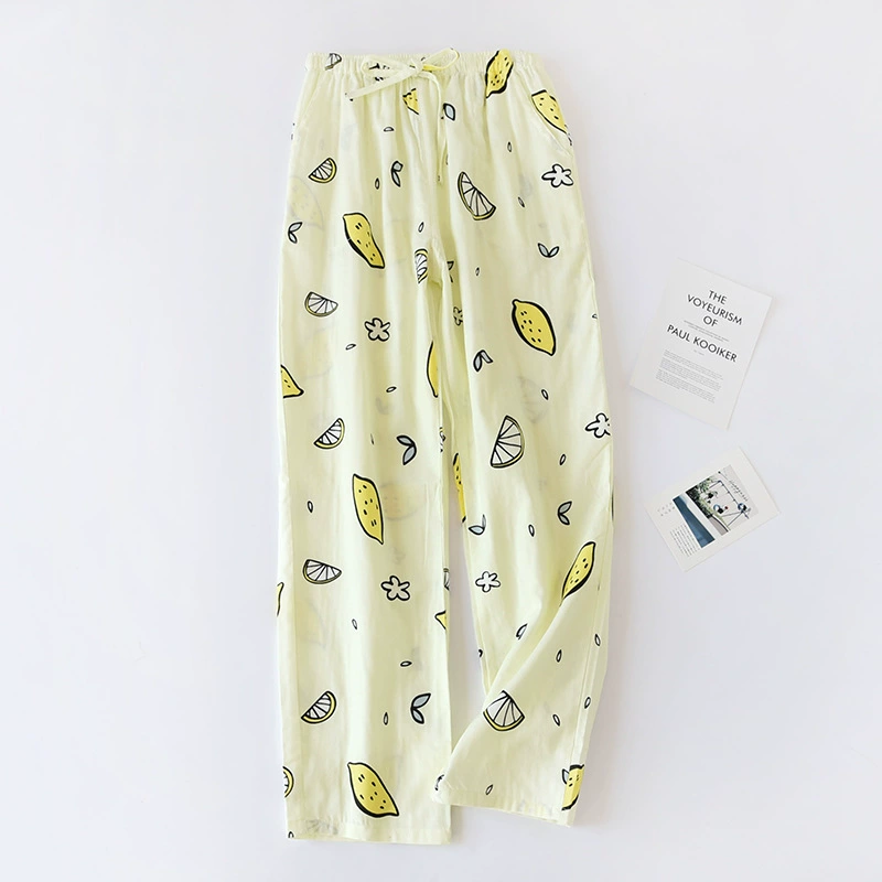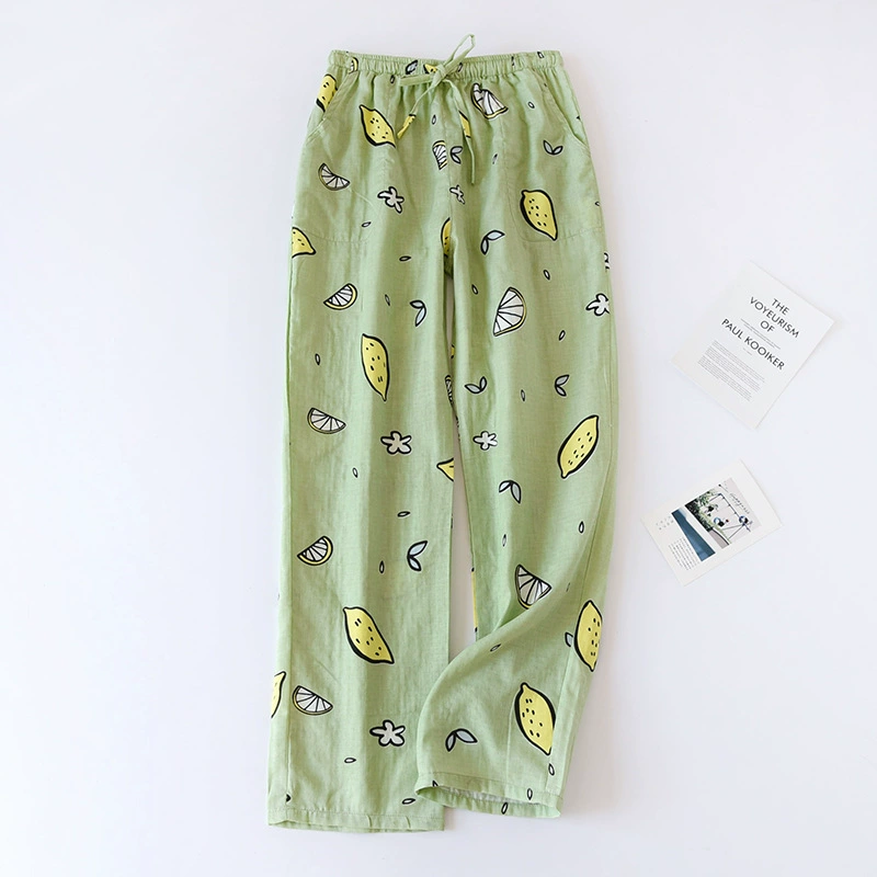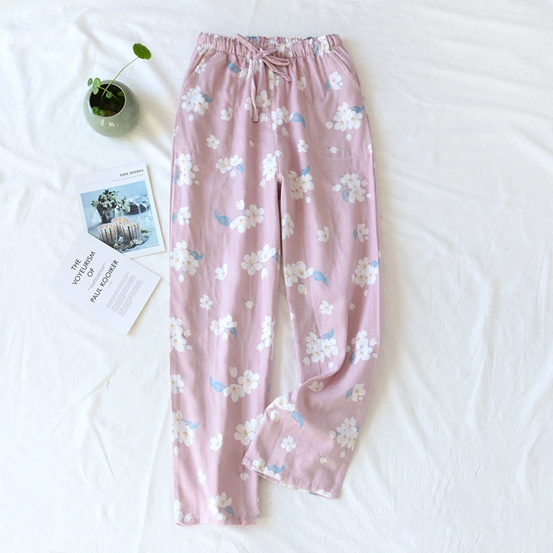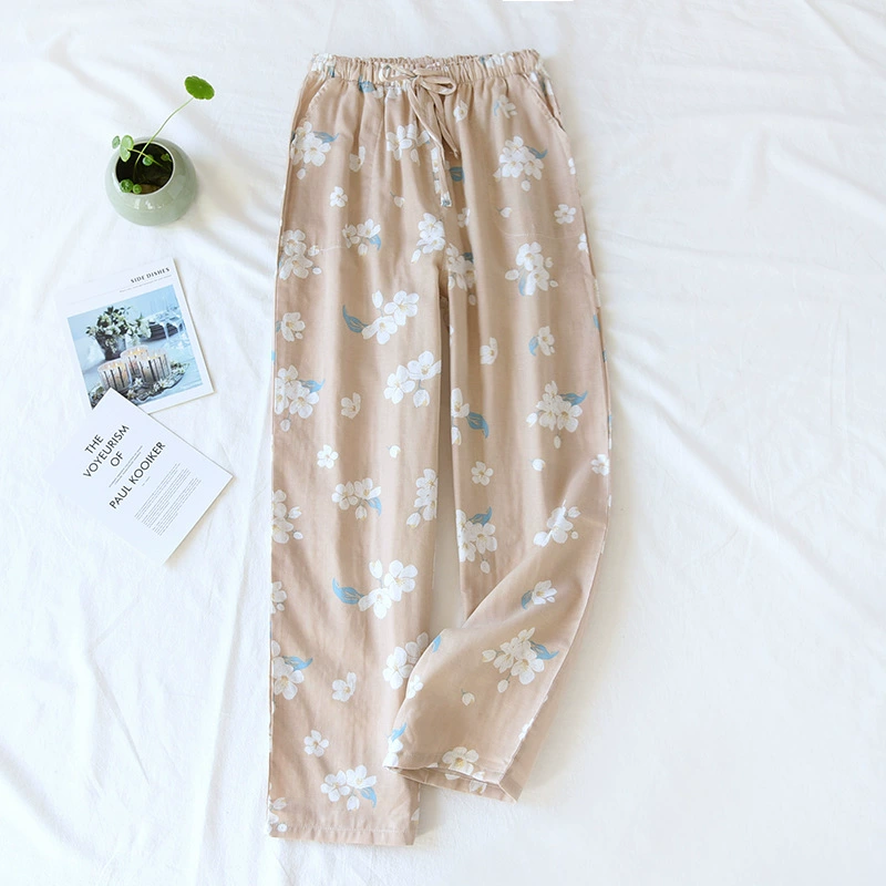 Летние 100% хлопковые домашние брюки из марли, женские штаны для сна, горячая Распродажа, пижамные брюки с принтом, женская одежда, женские свободные брюки