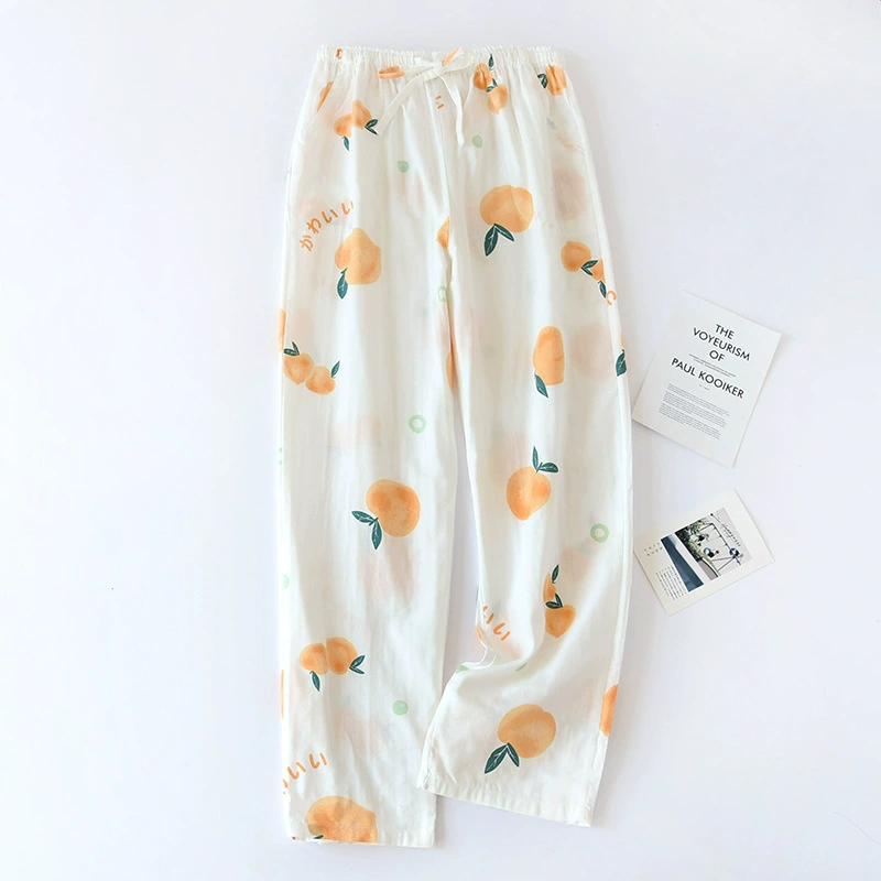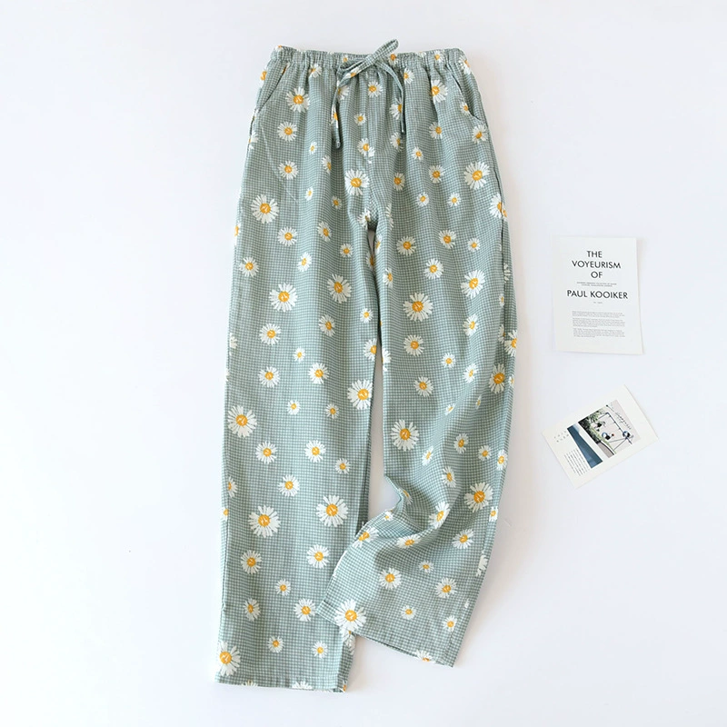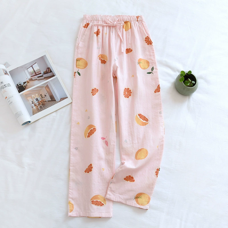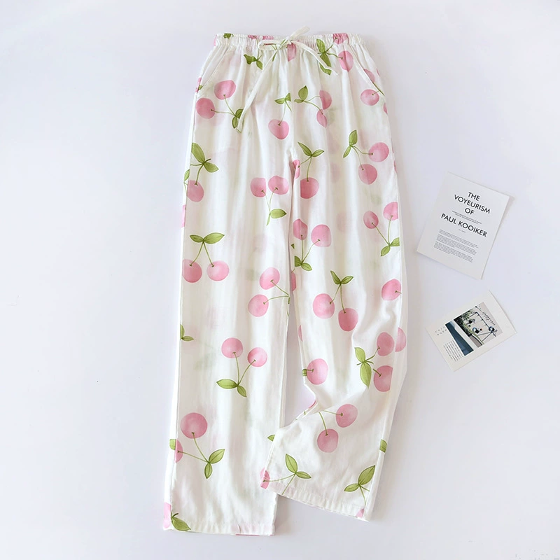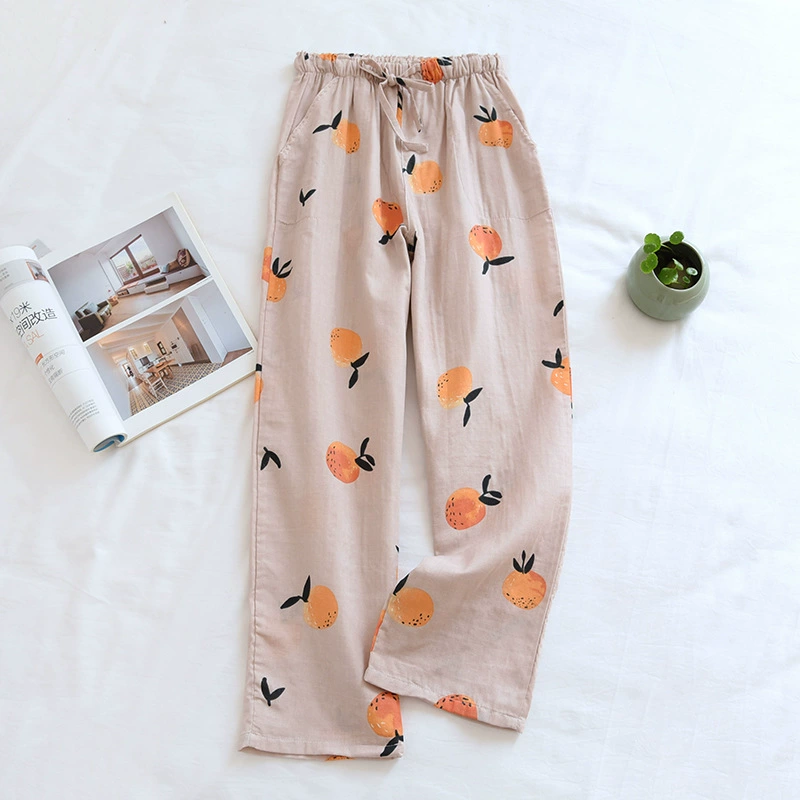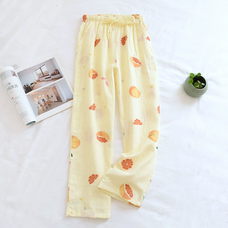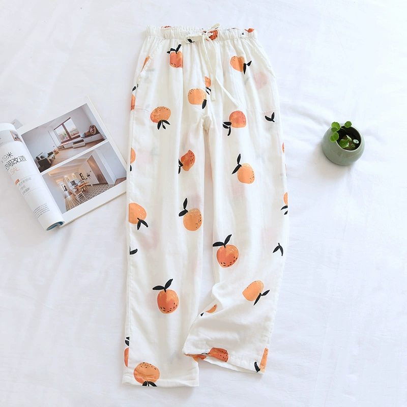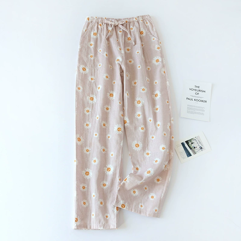 Летние 100% хлопковые домашние брюки из марли, женские штаны для сна, горячая Распродажа, пижамные брюки с принтом, женская одежда, женские свободные брюки
