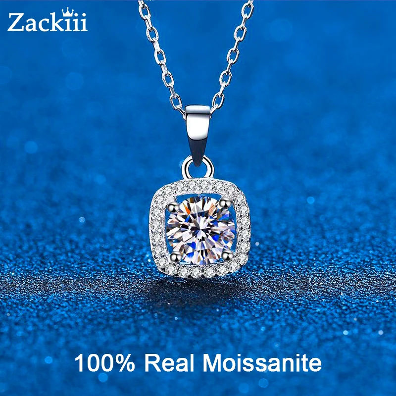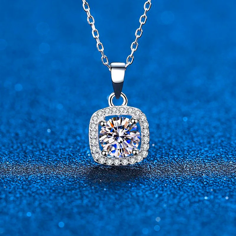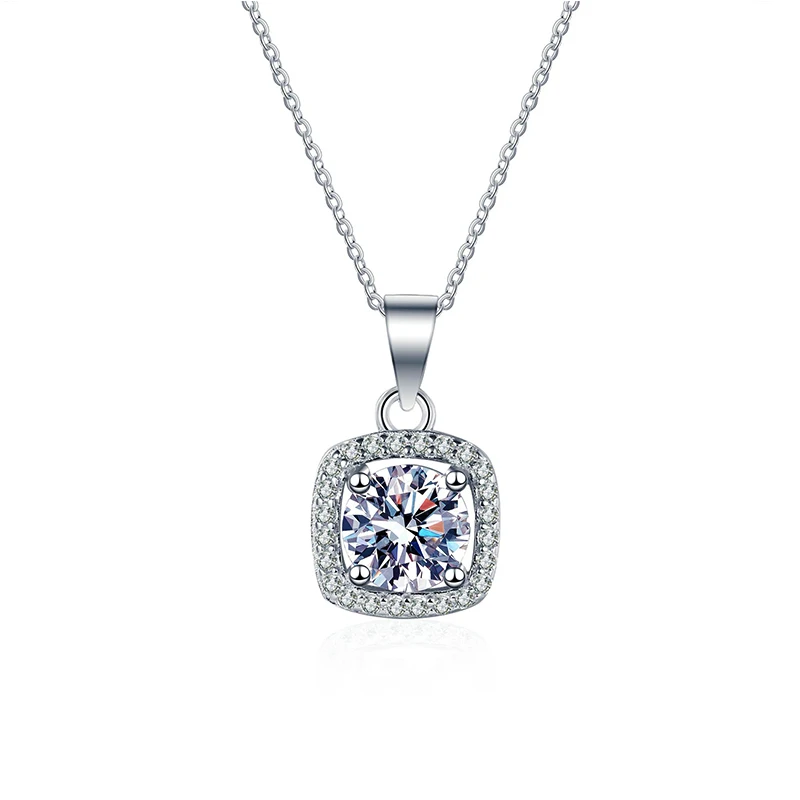 100% Moissanite Halo квадратное ожерелье с подвеской 1CT 2CT VVS1 D цветное превосходное ювелирное изделие с бриллиантами