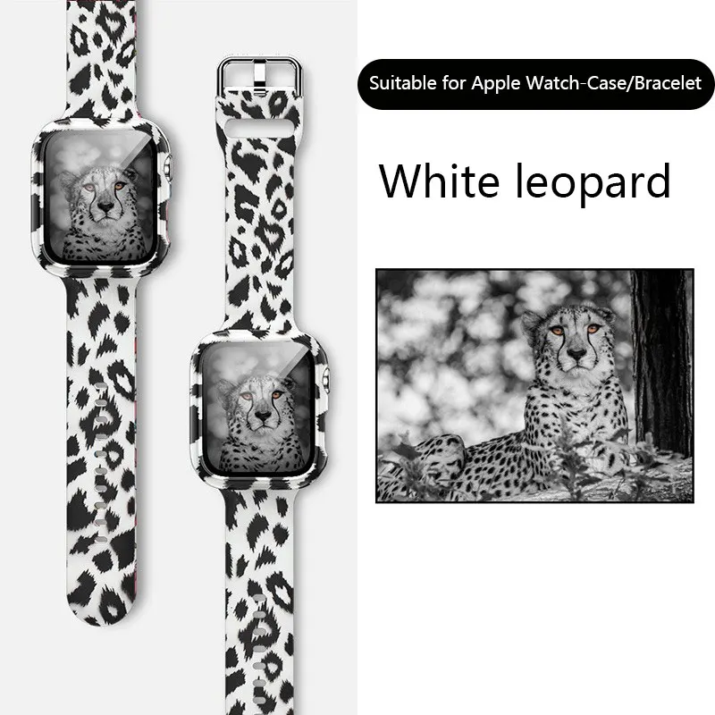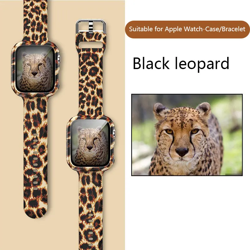 Стекло + чехол + ремешок для Apple Watch ремешок 44 мм 40 мм 38 мм 42 мм 44 мм модный Леопардовый собачий патруль силиконовый резиновый ремешок iWatch 3 4 5 6 se