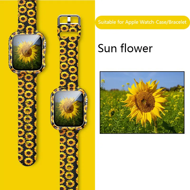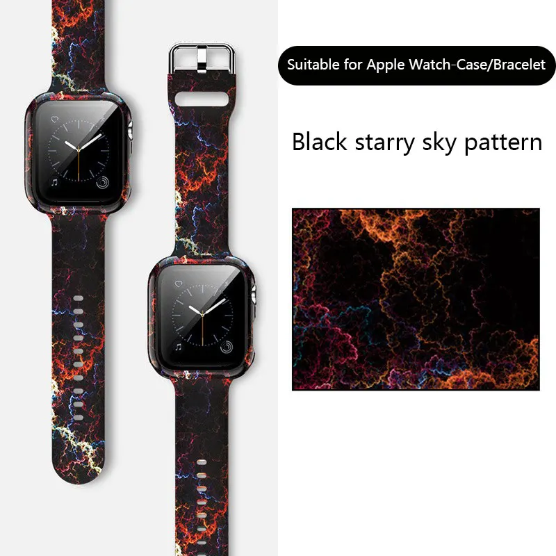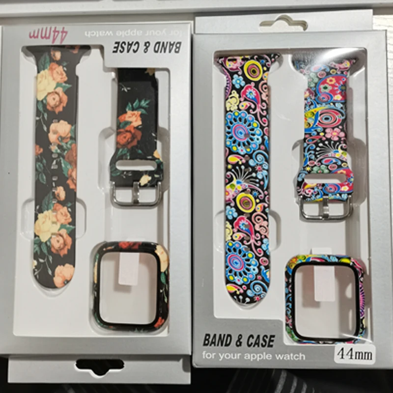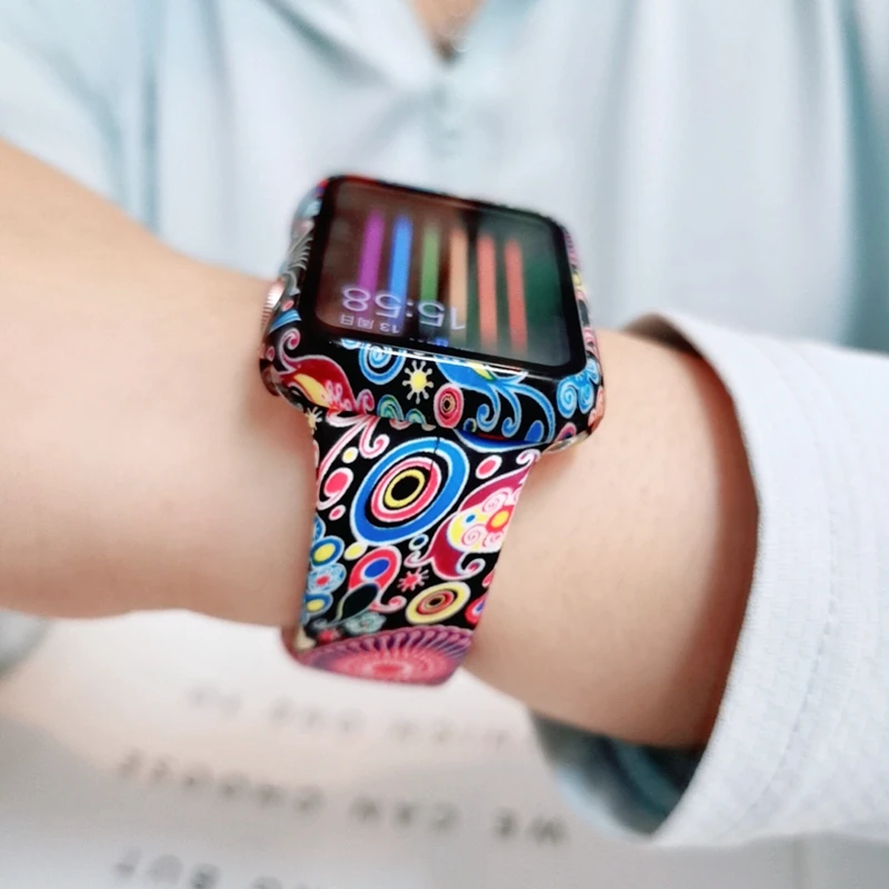 Чехол + стекло + чехол + ремешок для Apple Watch band 38 мм 44 мм 40 мм 42 мм, силиконовый браслет с принтом для наручных часов iWatch 3 4 5 6 se, ремешок