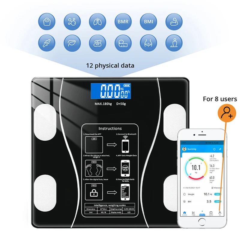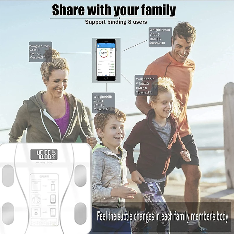 Несколько пользователей одной шкалы. Легко использовать для семьи и друзей. Каждый может следить за своим весом. Вы также можете сохранить данные своего тела в качестве конфиденциальности в вашем приложении или поделиться ими с друзьями в социальных приложениях.